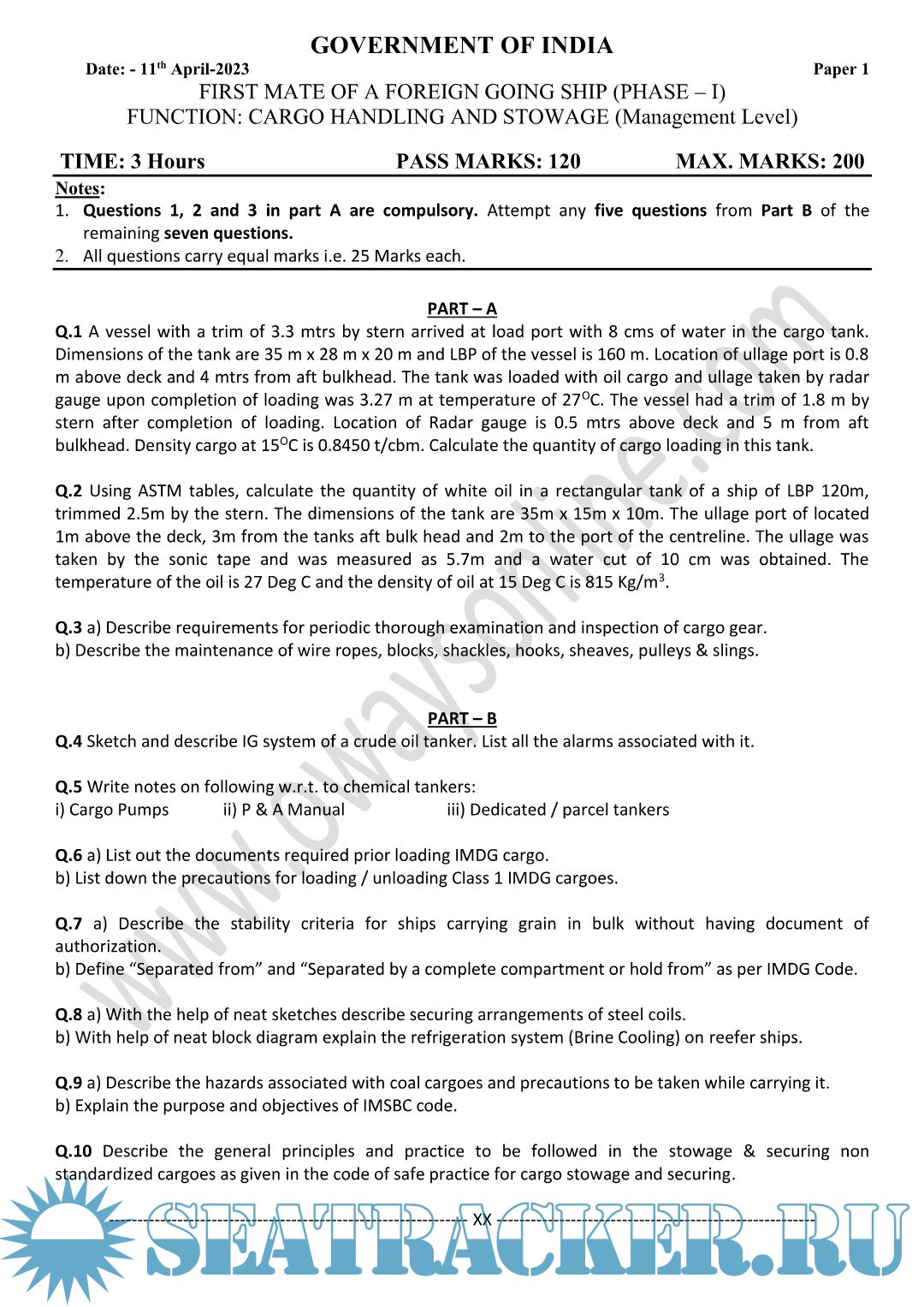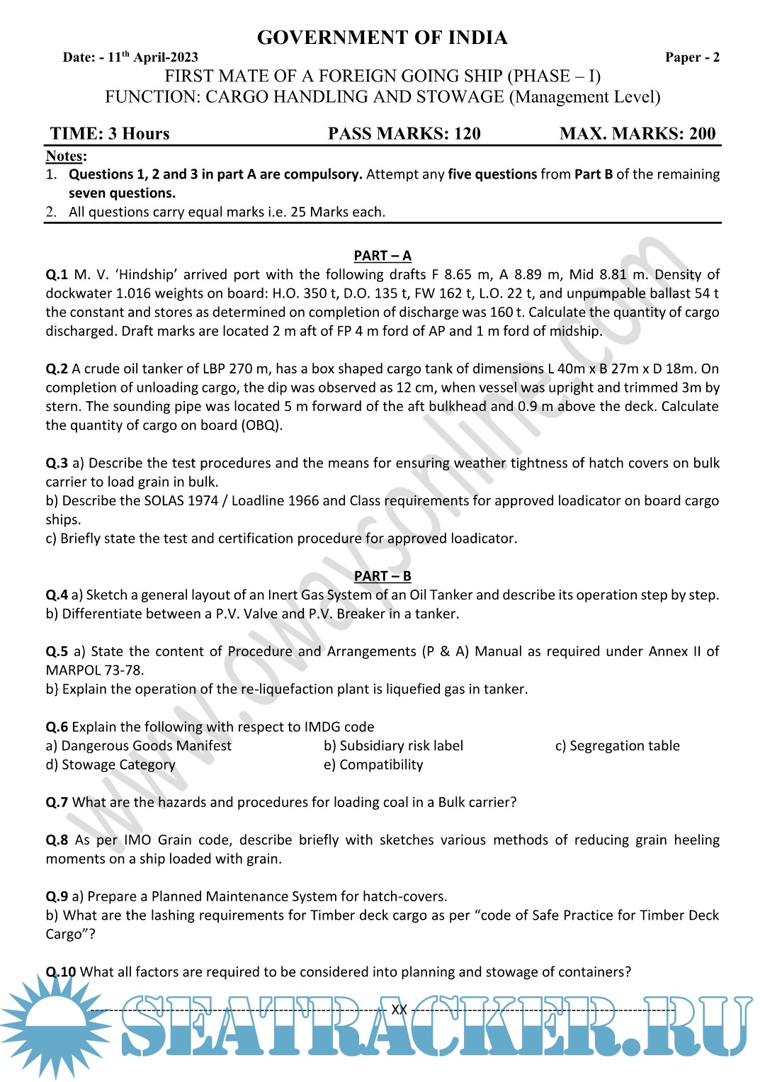 Question Paper Set (May 2023) Phase II (Chief Mate F.G.) Mercantile Marine Department (MMD), India…
