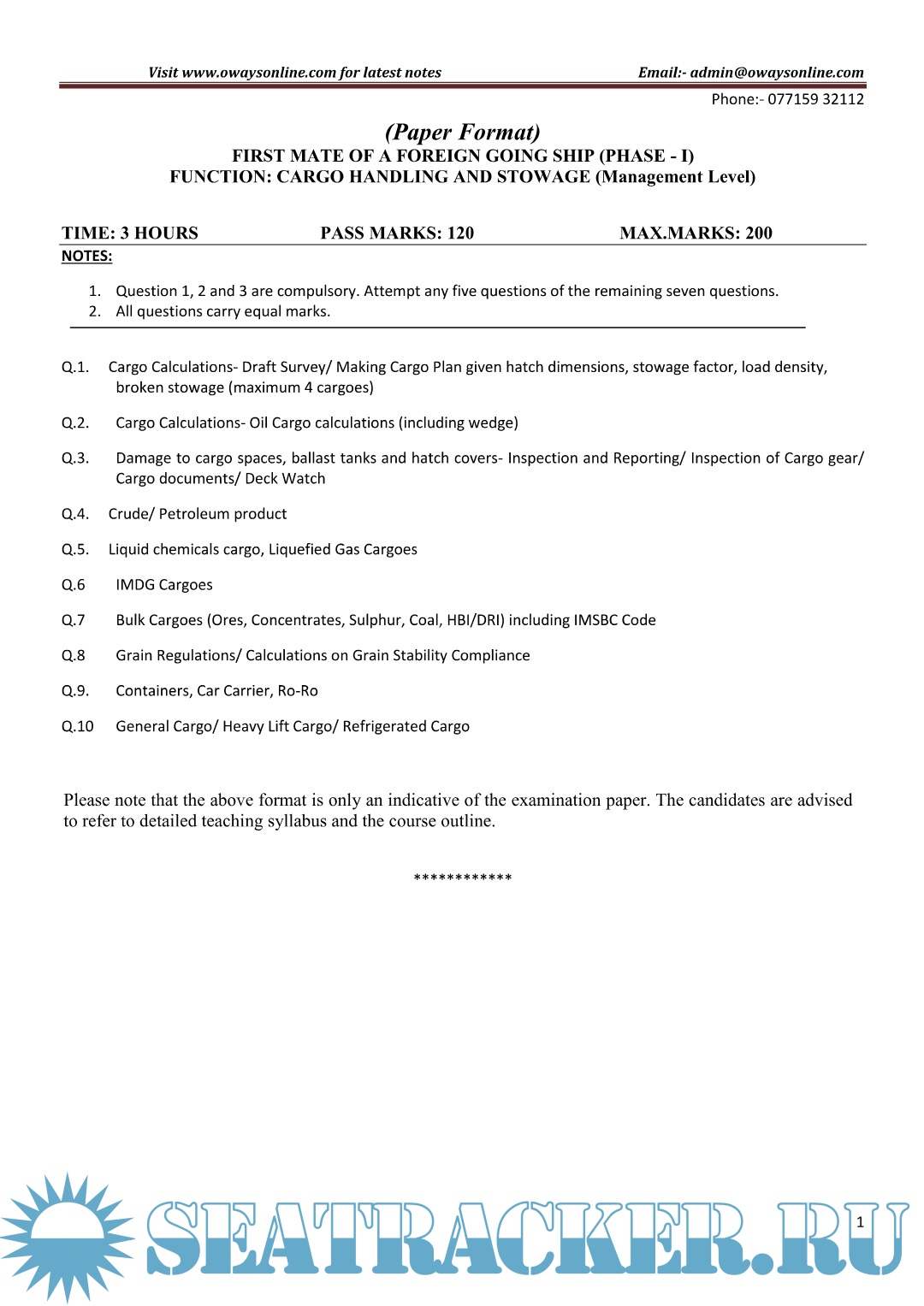 Cargo MMD Question Paper