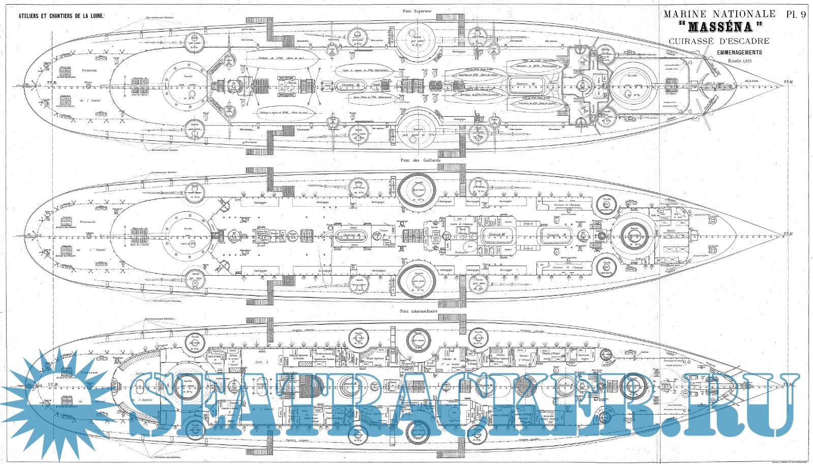 Архивные чертежи эскадренного броненосца MASSENA (Франция) 1898 год