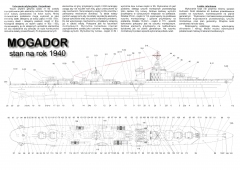 Описание: 14 листов цветных выкроек и инструкций для изготовления бумажной модели французского эскадренного миноносца ''Mogador'' в масштабе 1:200 по состоянию на 1940 год