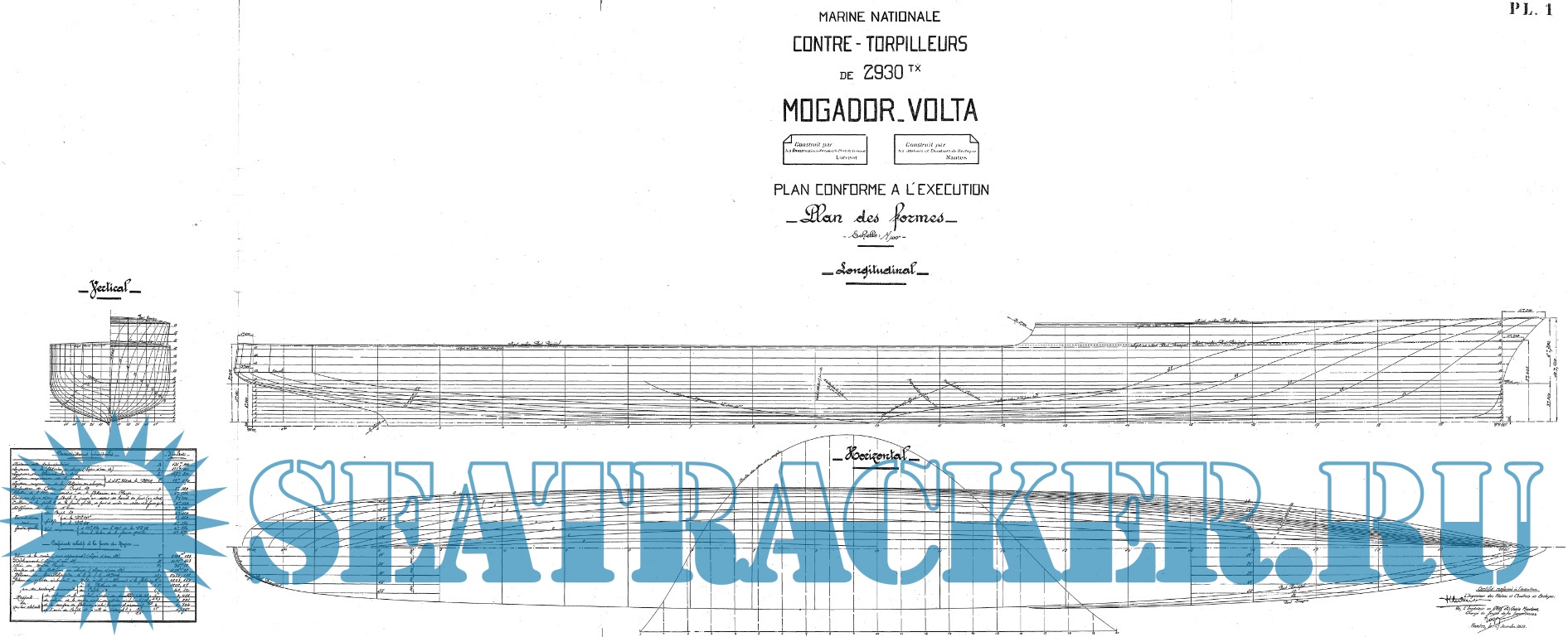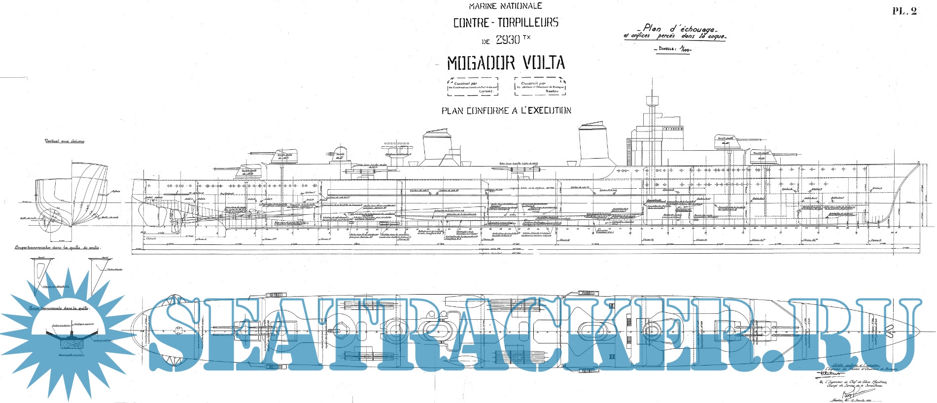 Архивные чертежи французского эскадренного миноносца VOLTA 1936 год - нет данных [1936, TIFF]
