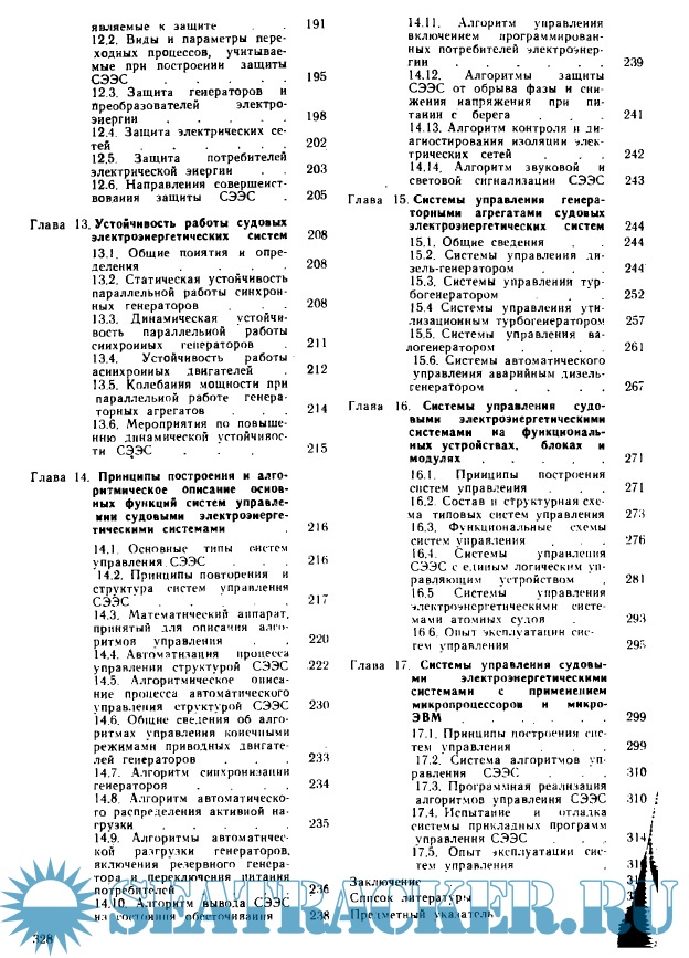 Рассмотрены вопросы автоматического регулирования напряжения и частоты судовых генераторов, математическое обеспечение и методология исследования процессов в установившихся и переходных режимах, защита и устойчивость работы СЭЭС. Изложены основы построения и алгоритмичеого описание функционирования систем управления генераторными агрегатами и СЭЭС.