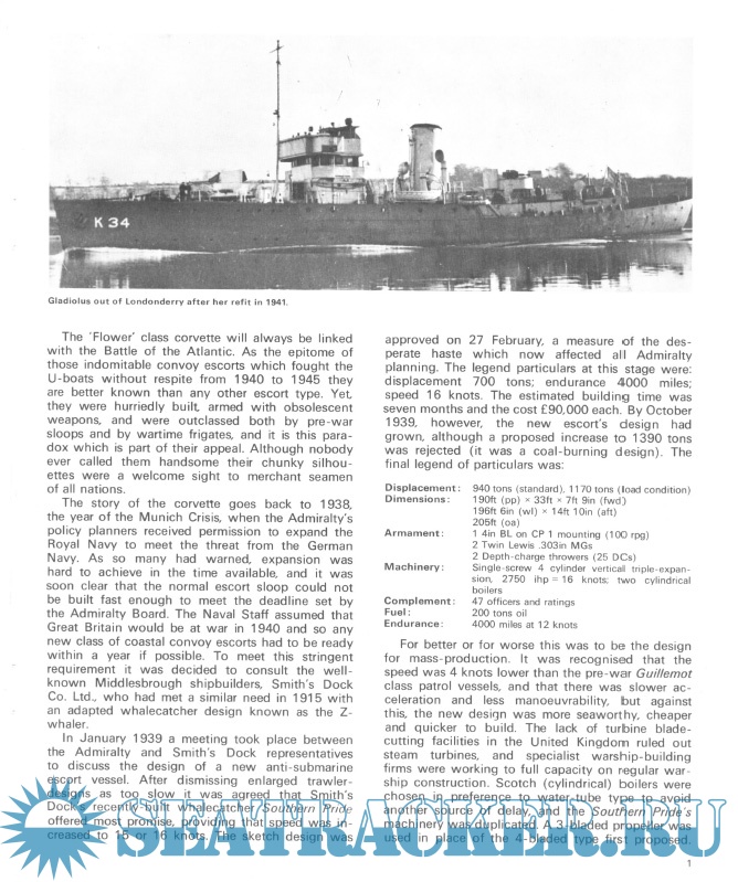 Description: Ensign No. 3 needs no introduction and every person with any sort of interest in warships has heard of the 'Flower' corvette; the most famous type of escort vessel ever built. The class as a whole was worked so hard on convoy duty that by 1945 a large number of the class were completely worn out. Although uncomfortable in the extreme they had one invaluable asset they could turn sharper than a U-boat. This and a good radius of action made them formidable opponents.