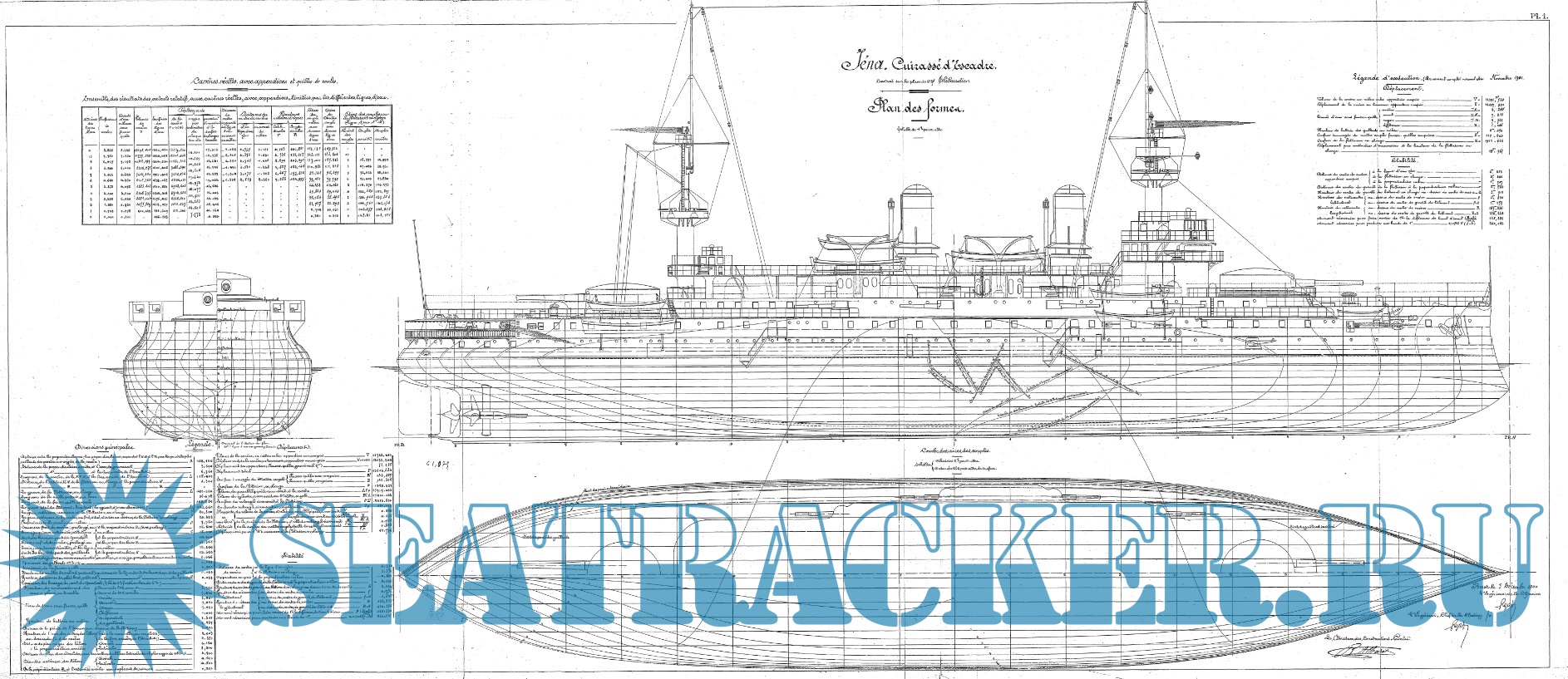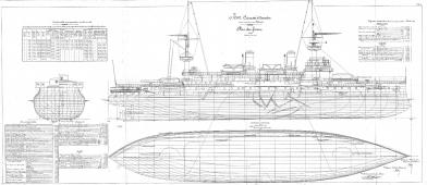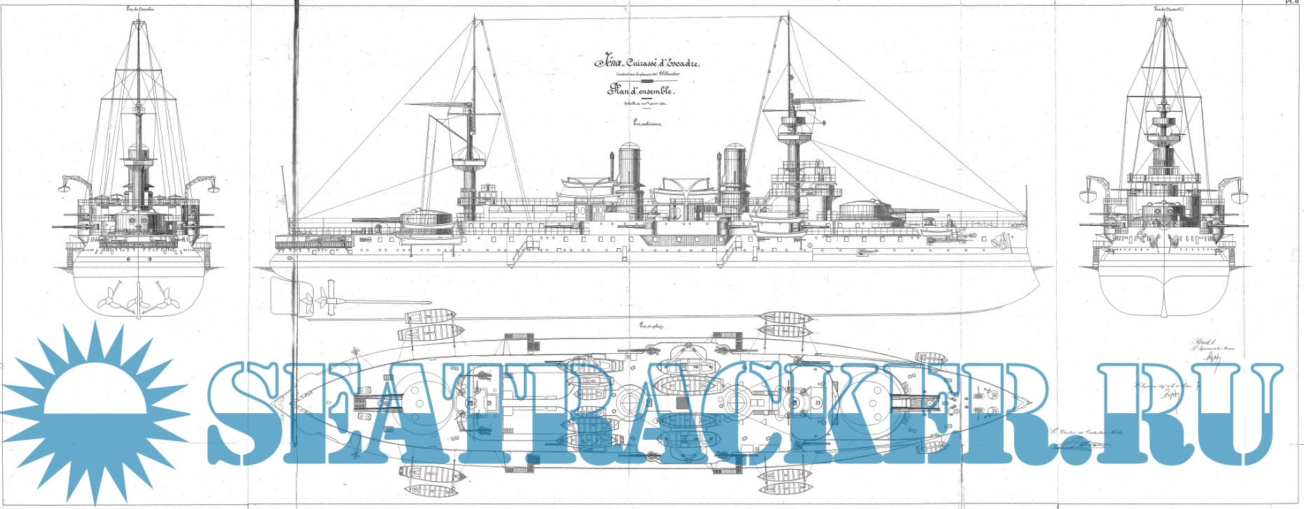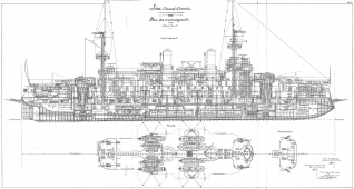 Архивные чертежи эскадренного броненосца IENA (Франция) 1898 год
