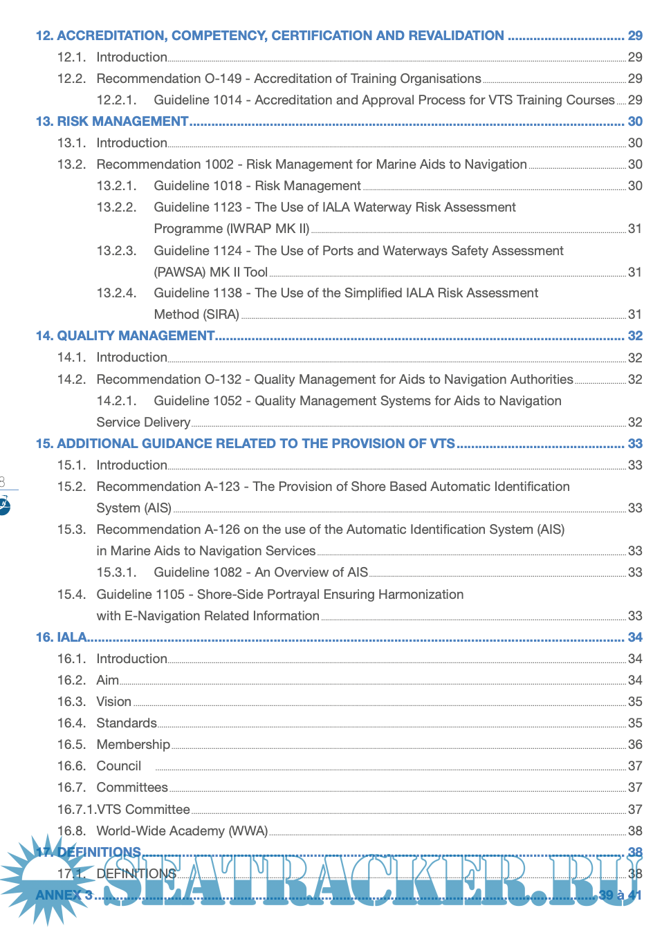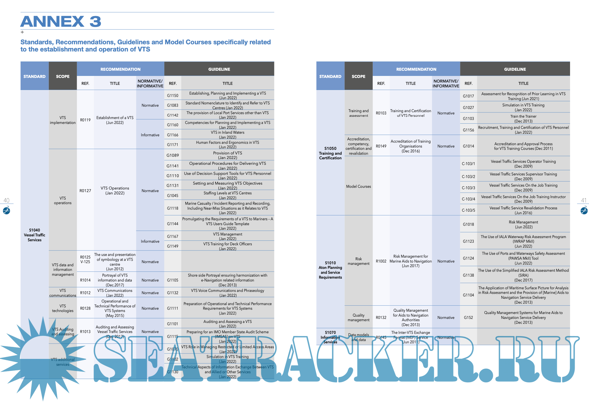 The Manual provides a source of reference on the establishment and provision of VTS for all stake- holders. It also provides a pointer to the suite of IALA Standards related to VTS and the associat- ed Recommendations, Guidelines, Model Cours- es that any VTS professional may seek.