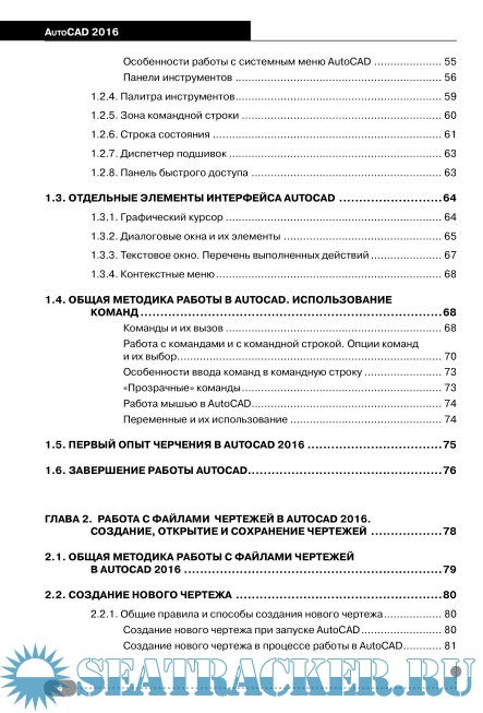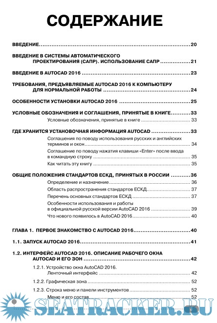 В книге подробно описаны все стадии работы от начальной настройки параметров чертежа, выполнения построений и их редактирования до нанесения размеров и штриховок, вывода чертежа на печать. По ходу изложения даются рекомендации и описываются средства по улучшению качества и скорости выполнения чертежей. Рассматриваются специальные возможности и технологии AutoCAD 2016, включая параметрическое проектирование. В конце каждой темы приводятся практические упражнения и примеры. Даются наглядные методики использования различных инструментов для решения конкретных задач: вы по шагам разбираете построение различных объектов и смотрите, как и какие инструменты для этого используются. Все это делает книгу незаменимой для самостоятельного изучения AutoCAD 2016 и позволяет добиться наилучшего результата в понимании материала и освоении программы. Завершает книгу удобный справочник команд.