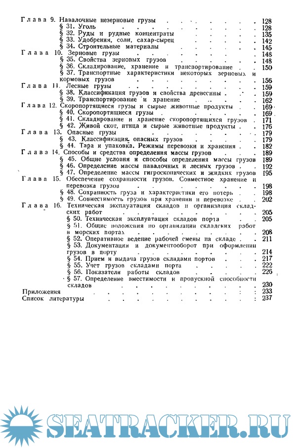 Дано описание технических условий строительства складов и транспортных средств, правил эксплуатации складов, организационной структуры складских служб в портах, основных видов работ, осуществляемых складскими работниками, способов определения массы грузов, документального учета движения грузов и учета груза в АСУ «Порт». Особое внимание уделяется вопросам охраны окружающей среды и рационального использования водных ресурсов.