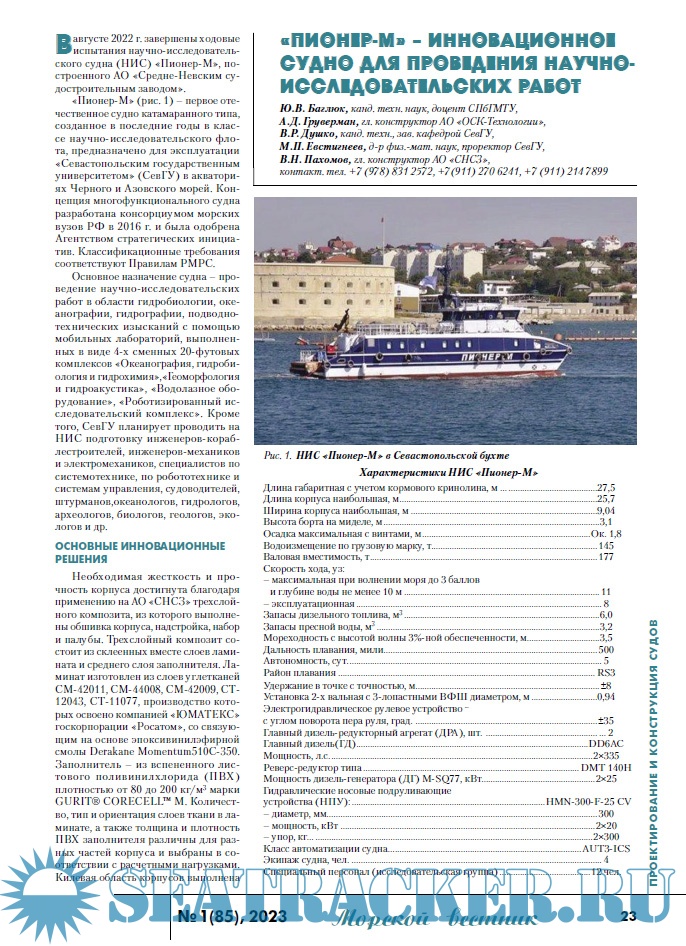 Описание: Информационные, аналитические, научно-технические и исторические статьи по морской технике и технологиям, экологической безопасности судостроения и судоходства, освоению океана и шельфа, безопасности мореплавания, истории флота и мореплаваний, морскому бизнесу и праву.