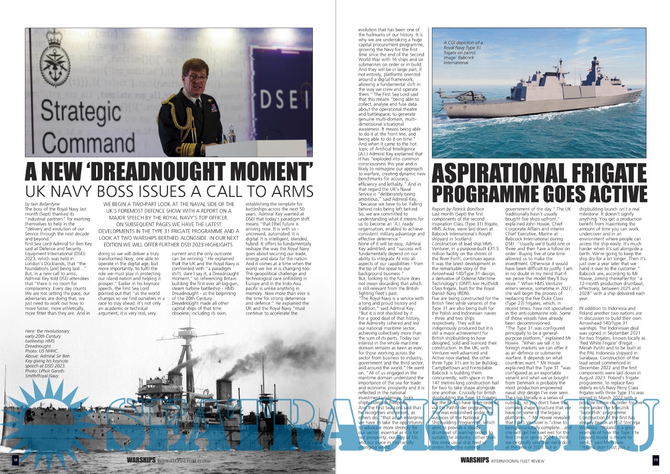 Year: 2023 Language: english Author: Iain Ballantyne (Editor) Genre: Periodical (magazine) Format: PDF Quality: eBook Pages count: 52 Description: Warships IFR puts the spotlight on the latest developments in the world’s navies. It covers current defence issues and has comments by leading analysts. The magazine regularly includes features on the Royal Navy and the US Navy in addition to incorporating news and features on all other navies across the globe. Warships IFR frequently carries in-depth articles on naval heritage.WARSHIPS International Fleet Review is published 12 times a year by Tandy Media Ltd who also publish Shipping Today & Yesterday (which provides news and features from the world of merchant shipping).