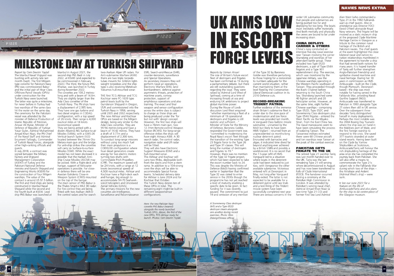 Description: Warships IFR puts the spotlight on the latest developments in the world’s navies. It covers current defence issues and has comments by leading analysts. The magazine regularly includes features on the Royal Navy and the US Navy in addition to incorporating news and features on all other navies across the globe. Warships IFR frequently carries in-depth articles on naval heritage.WARSHIPS International Fleet Review is published 12 times a year by Tandy Media Ltd who also publish Shipping Today & Yesterday (which provides news and features from the world of merchant shipping).