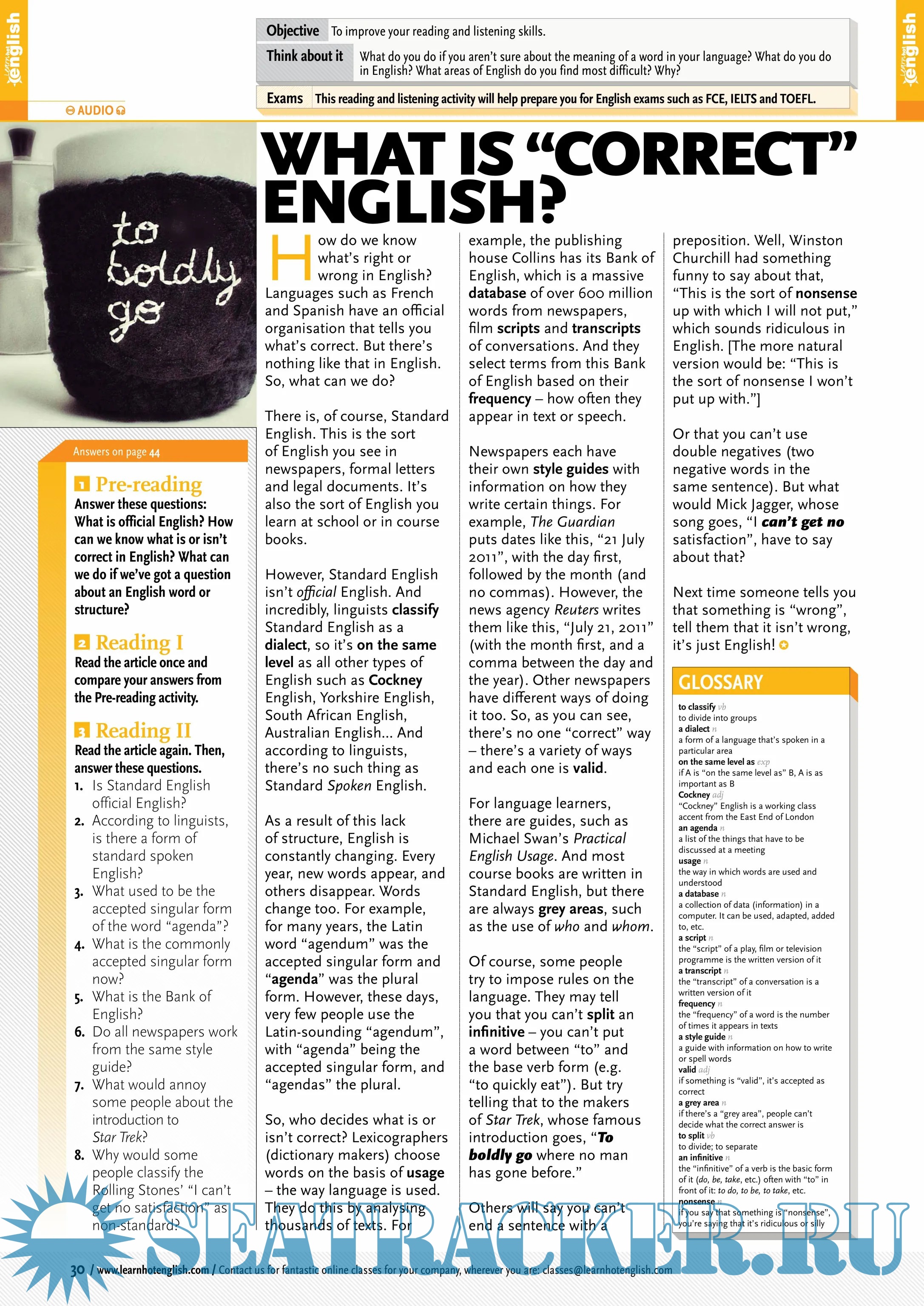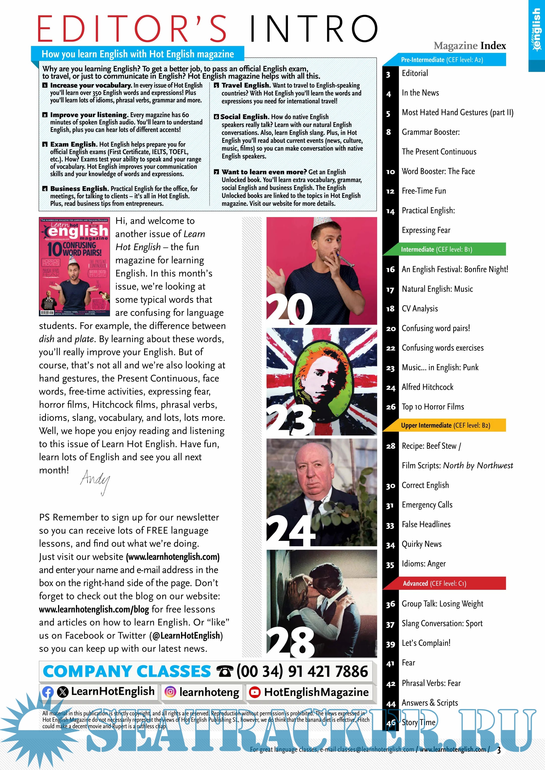 The number one magazine for learning and teaching English!Are you learning English? Or are you an English teacher? Either way... if you're looking for a fun and interesting English magazine for learning or teaching English then you've come to the right place. Hot English magazine is a leading English resource. Its fun and colourful approach to teaching real English as it's spoken by native speakers is popular around the world. Loved by both students and teachers, there's something for everyone and all levels in Hot English magazine. By reading and listening to all this great content, you’ll improve your English reading and listening skills and learn up to 1,000 useful words or expressions. Plus, you’ll get a better job and pass English-language exams more easily. Guaranteed!