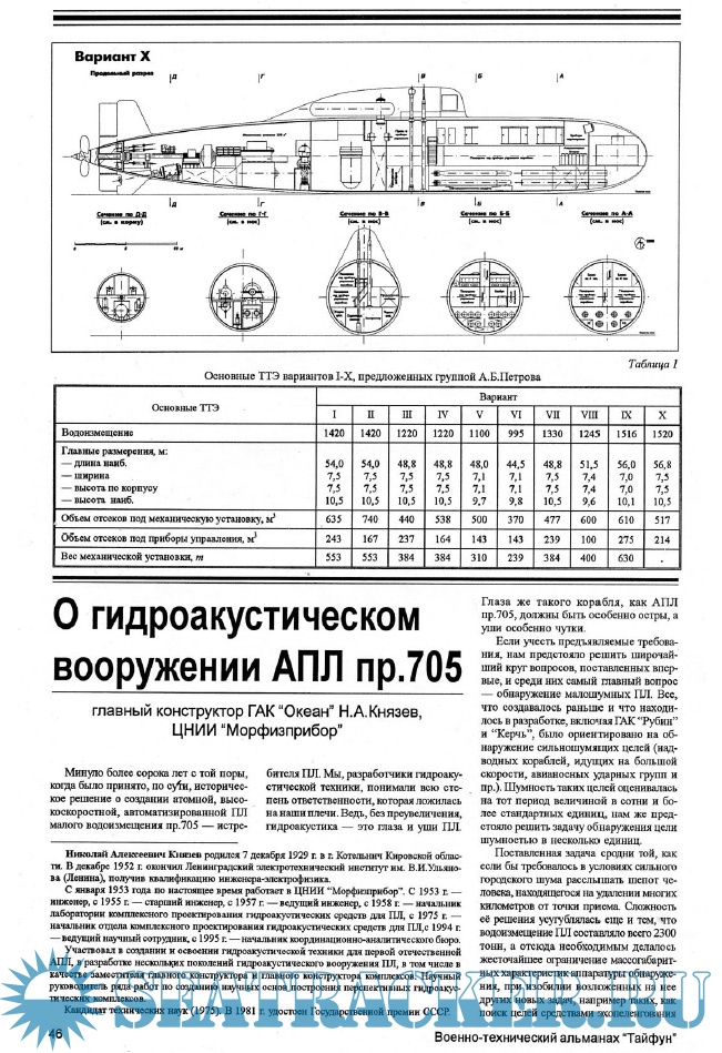 Н.А.Князев. О гидроакустическом вооружении АПЛ пр.705