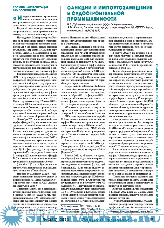 Год выпуска: 2022 Язык: русский Автор: группа авторов Жанр: Периодическое издание (журнал) Издание: 2022-03 Формат: PDF Качество: Изначально компьютерное (eBook) Количество страниц: 111 Описание: Информационные, аналитические, научно-технические и исторические статьи по морской технике и технологиям, экологической безопасности судостроения и судоходства, освоению океана и шельфа, безопасности мореплавания, истории флота и мореплаваний, морскому бизнесу и праву.