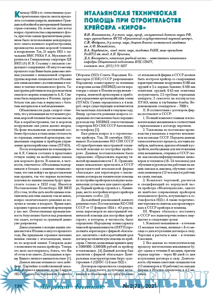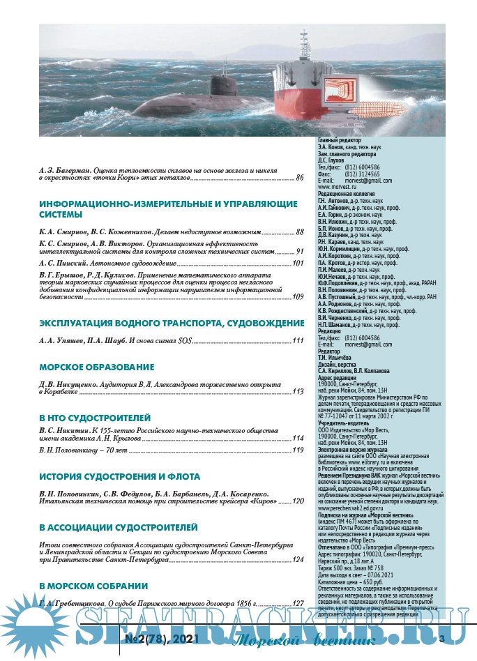 Описание: Информационные, аналитические, научно-технические и исторические статьи по морской технике и технологиям, экологической безопасности судостроения и судоходства, освоению океана и шельфа, безопасности мореплавания, истории флота и мореплаваний, морскому бизнесу и праву.