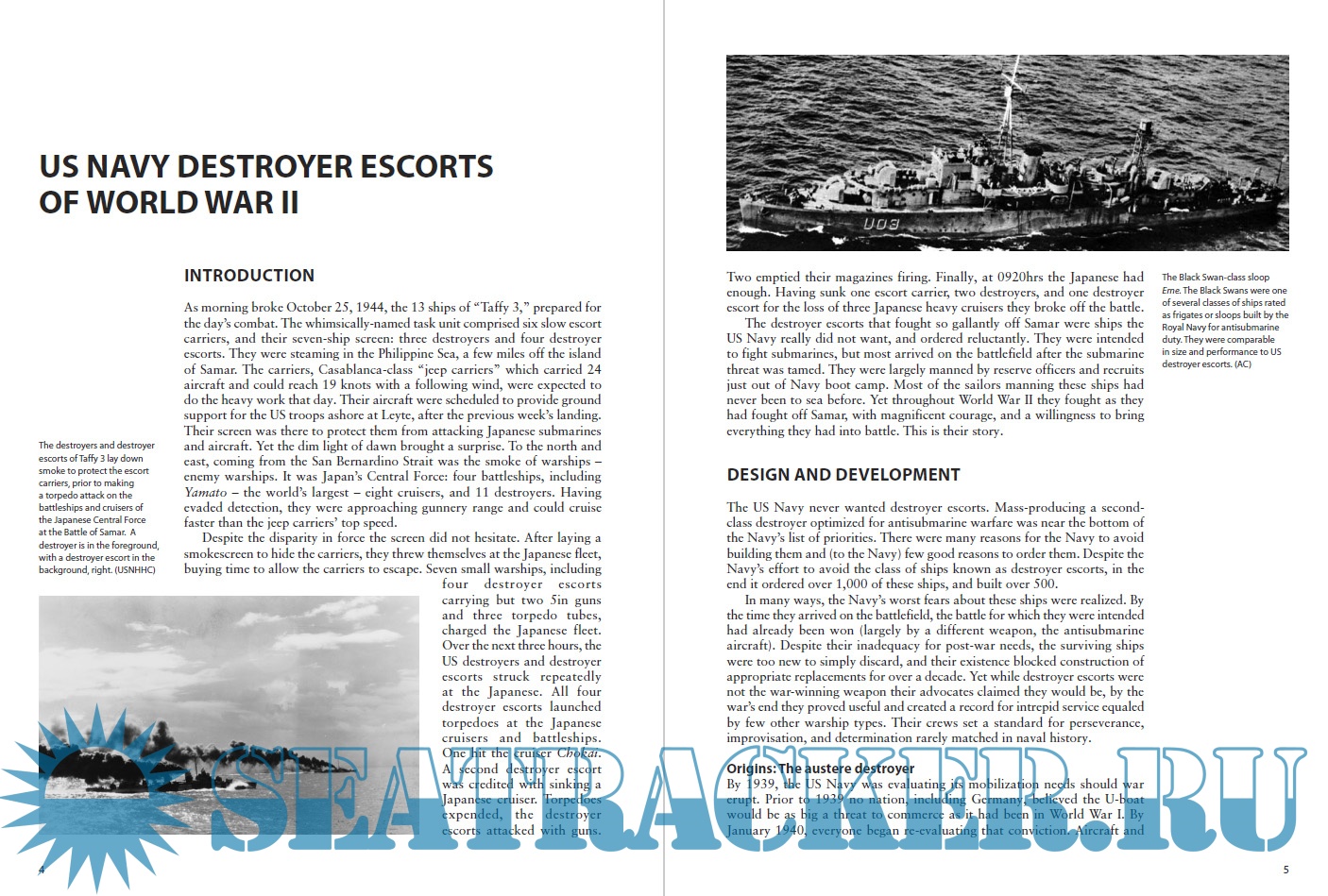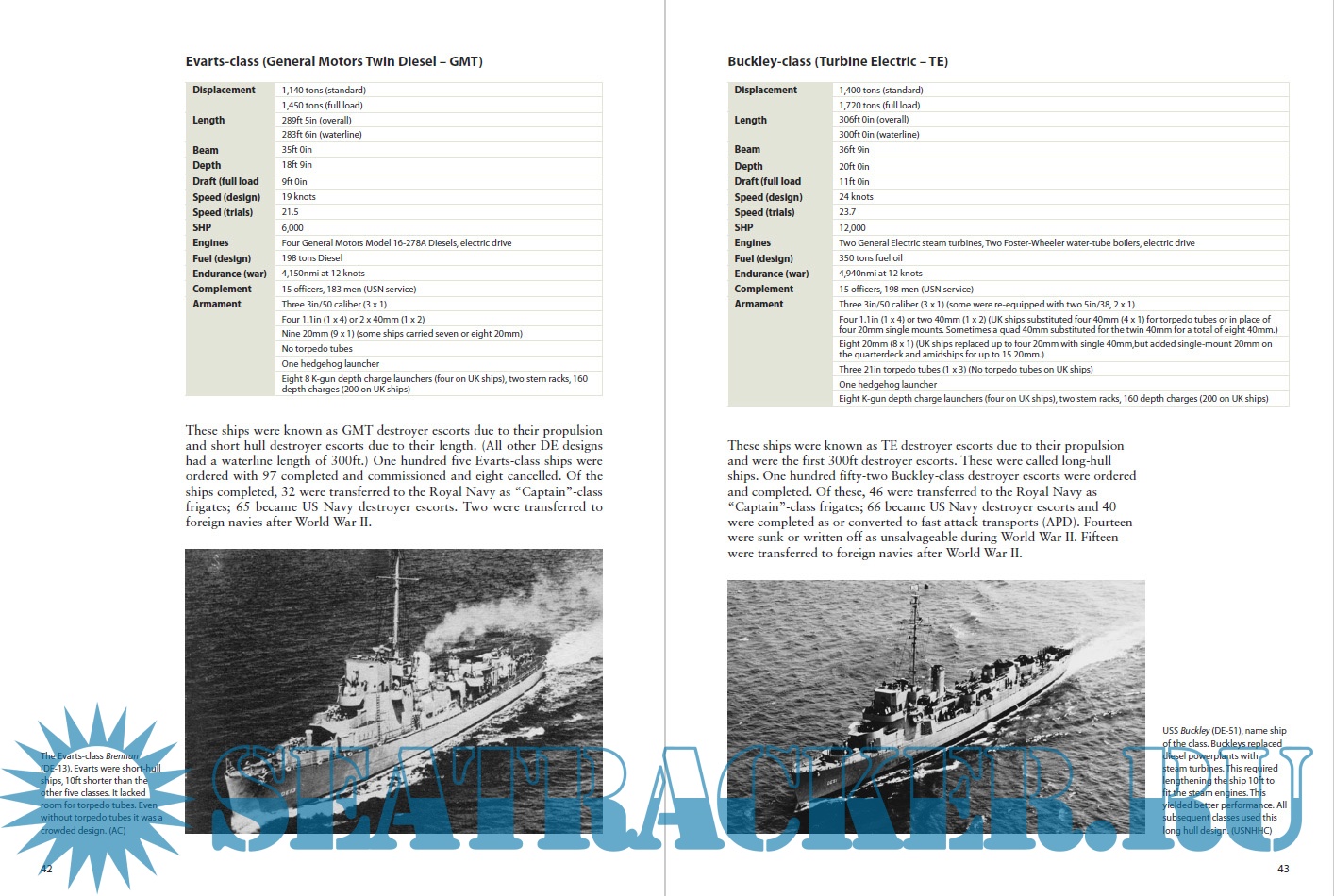 Despite the Navy's initial reservations, these ships did yeoman service during World War II, fighting in both the Atlantic and Pacific, taking on both U-boat and Japanese submarines and serving as the early warning pickets against kamikazes later in the war. They also participated in such dramatic actions as the Battle off Samar (where a group of destroyers and destroyer escorts fought Japanese battleships and cruisers to protect the escort carriers they were shielding) and the capture of the U-505 (the only major naval vessel captured at sea by the US Navy). The destroyer escorts soldiered on after World War II in both the United States Navy and a large number of navies throughout the world, with several serving into the 21st century. This book tells the full story of these plucky ships, from their design and development to their service around the world, complete with stunning illustrations and contemporary photographs.
