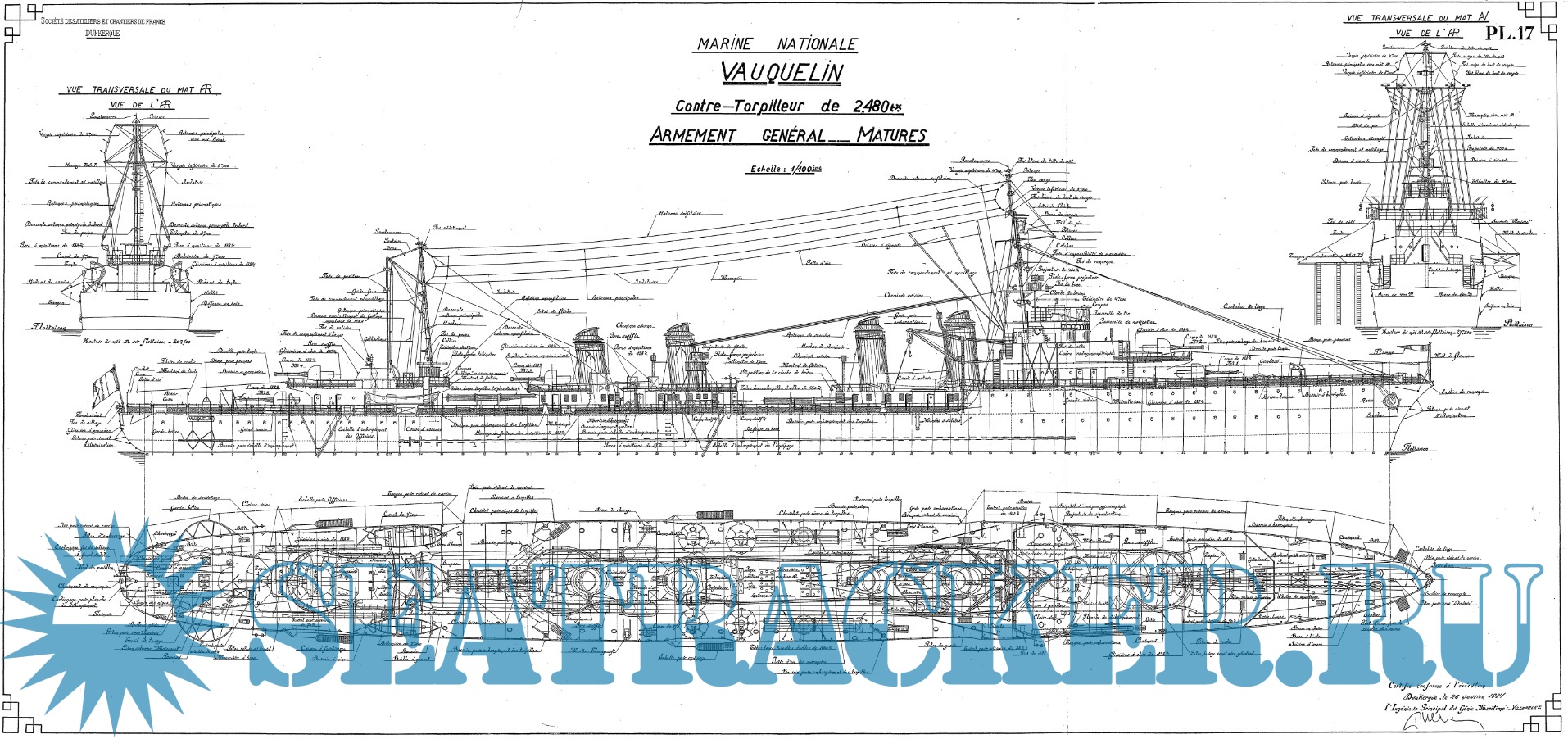 Архивные чертежи французского контр-миноносца VAUQUELIN 1931 год