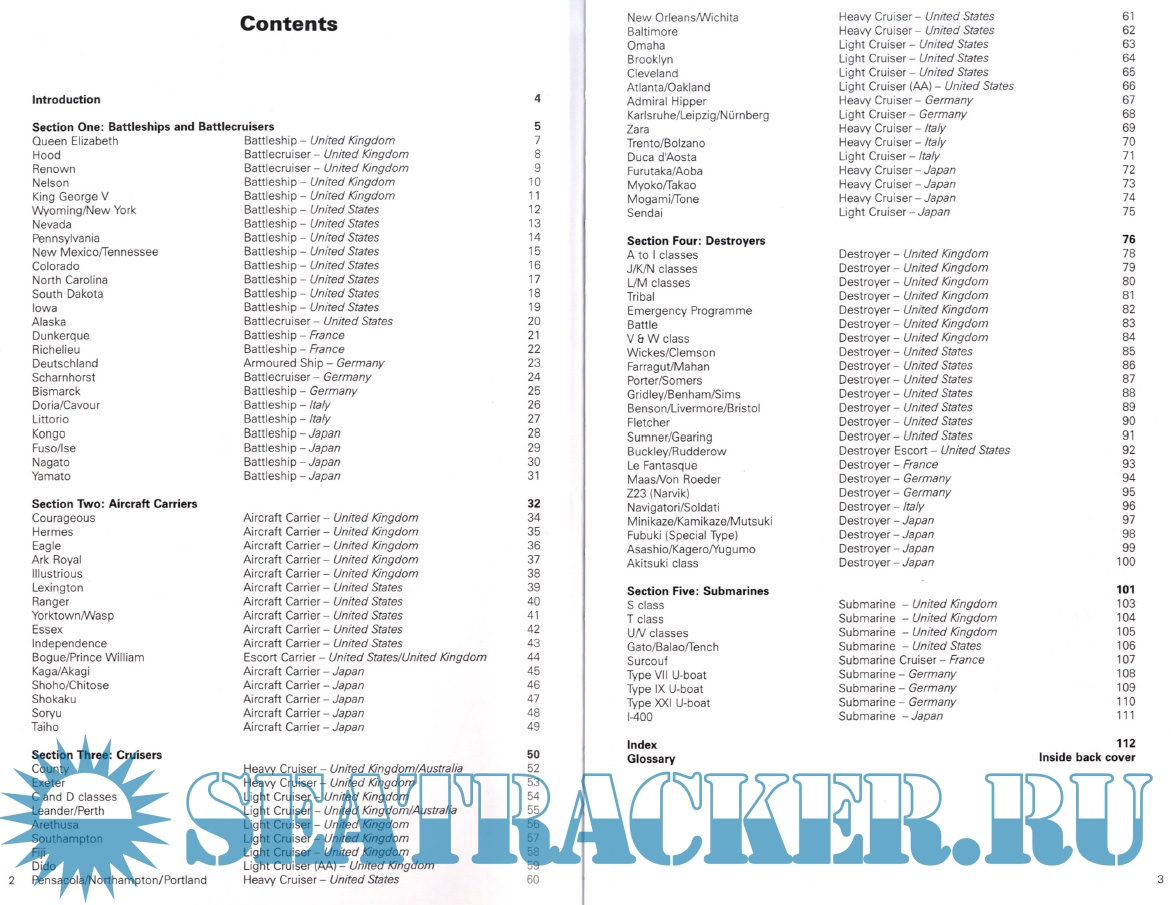 Description: This book includes the principal ships that were engaged in the war at sea between 1939 and 1945. The mighty battleships and cruisers that roamed the oceans, great aircraft carriers deployed in the Mediterranean and Pacific campaigns and the hard-pressed destroyers and U boats engaged in the Battle of the Atlantic are all described and illustrated. The book is divided into sections on battleships and battlecruisers, aircraft carriers, cruisers, destroyers and submarines. Specifications include displacement, length, draught, power-plant, speed and range, complement and weapons.