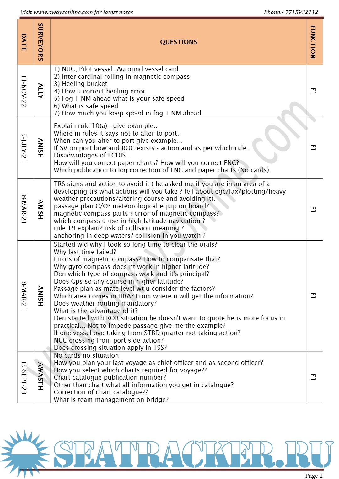 Year: 2023 Language: english Author: Oways Online Format: PDF Quality: eBook Pages count: 267 Description: Orals Question Bank for Chief Mate F.G. Mercantile Marine Department (MMD), India Examinations. Segregated as per Functions / Surveyors/ Dates.Mumbai Surveyors.