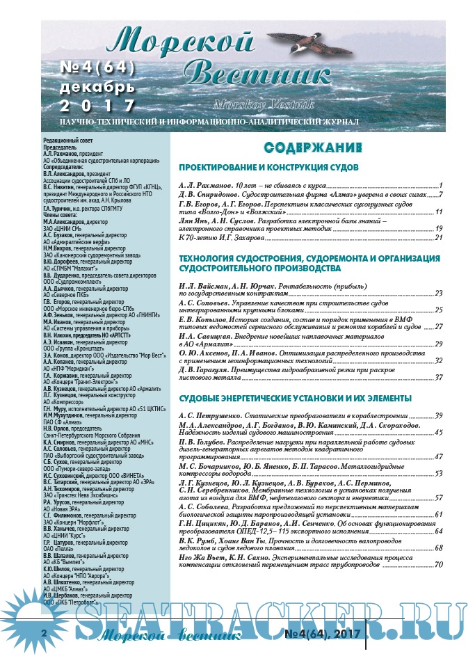Описание: Информационные, аналитические, научно-технические и исторические статьи по морской технике и технологиям, экологической безопасности судостроения и судоходства, освоению океана и шельфа, безопасности мореплавания, истории флота и мореплаваний, морскому бизнесу и праву.