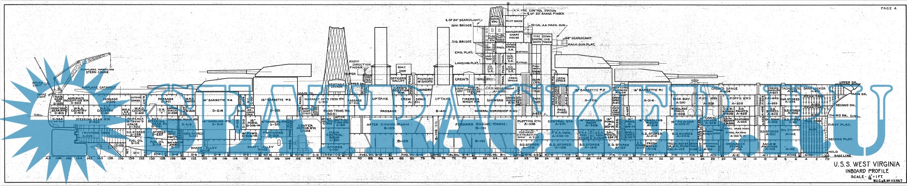 Архивные чертежи линкора США West Wirginia ВВ48 1935 год