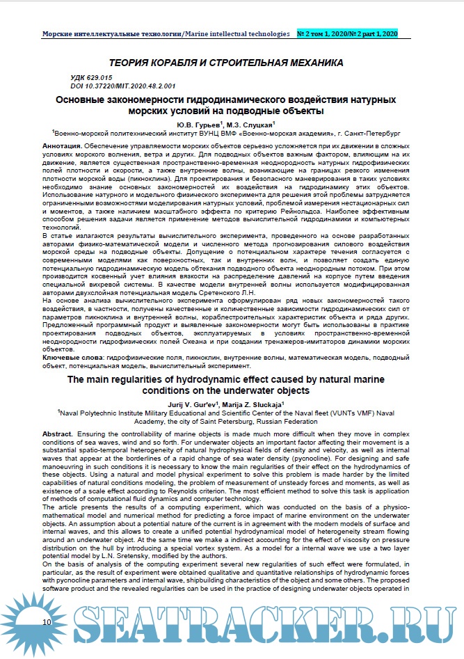 Морские интеллектуальные технологии 2020 №2 (48) Tом 1