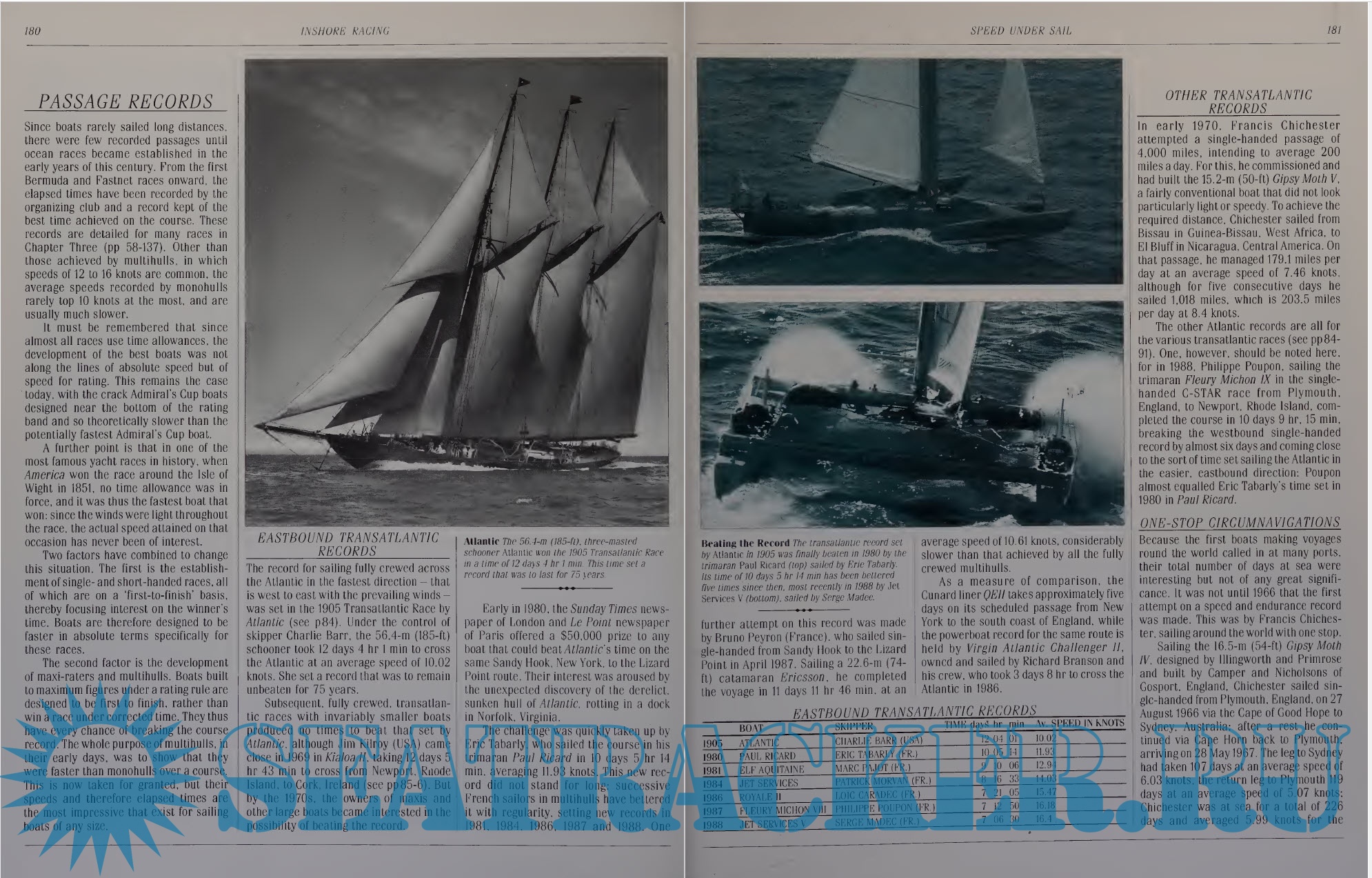 Description: A colorful and exciting look at the world of sailing. After a solid chapter on the history of yachting, which features a good chronology from the early 17th century to the present, there is a good chapter on cruising, followed by another thorough chapter on offshore racing. Also covered are the America's Cup races, inshore racing, and the Olympic Games. Most of these sections also include nice historical statistical lists. A keelboat and dinghy section provides color drawings of the various classes and pertinent design features as well as dates they were designed, etc. The book concludes with a detailed series of mini-charts of popular sailing areas around the world. This work compares quite favorably with other picture books on the history of yachting, and it is particularly valuable as a reference source for the statistical information and diagrams of race courses and sailing areas provided. As one would expect from the editors of Sail , there are also beautiful color photographs and illustrations.