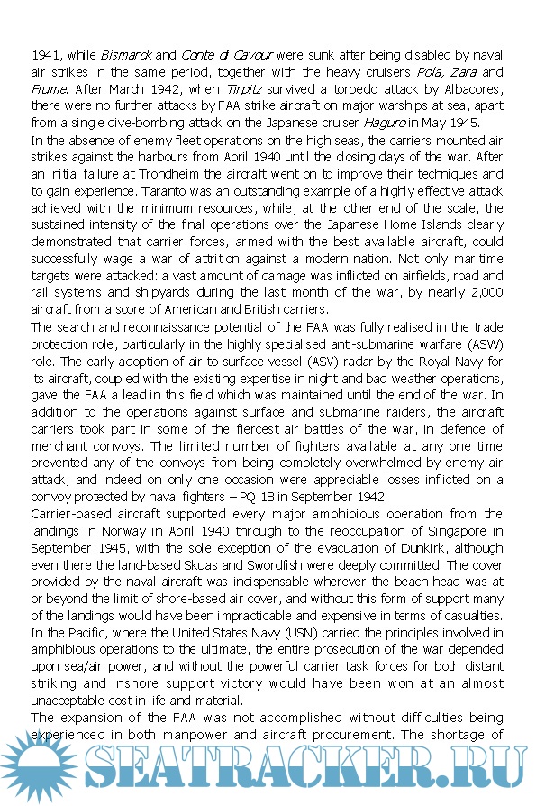 Year: 2009 Language: english Author: J D Brown Genre: History Publisher: Seaforth Publishing Format: EPUB Quality: eBook Pages count: 603 Description: Between 1939 and 1945 the Royal Navy's Fleet Air Arm grew from a small force into a powerful strategic weapon. British carrier-based aircraft fought throughout the world and David Brown here describes their activities in the Home, Mediterranean, Eastern and British Pacific Fleets, together with Forces created for specific operations, listing aircraft and units embarked during the various phases.He goes on to describe carrier operations in the Pacific between 1941 and 1945, the greatest maritime war in history. Both the United States and Imperial Japanese Navies watched the Royal Navy's early carrier operations in the European Theatre and benefited from the lessons. American aircrews and sailors learnt quickly in action until, by March 1945, the United States Fifth Fleet with its associated Marine Corps formations was probably the most efficient and effective instrument of war deployed in the pre-nuclear age.This new work contains material from two volumes, first published in 1968 and 1974, merged with notes for a third which David Brown prepared but never published before his death. They appear for the first time together, providing the most detailed single-volume account currently available of the operation of British, American and Japanese aircraft carriers in World War II.