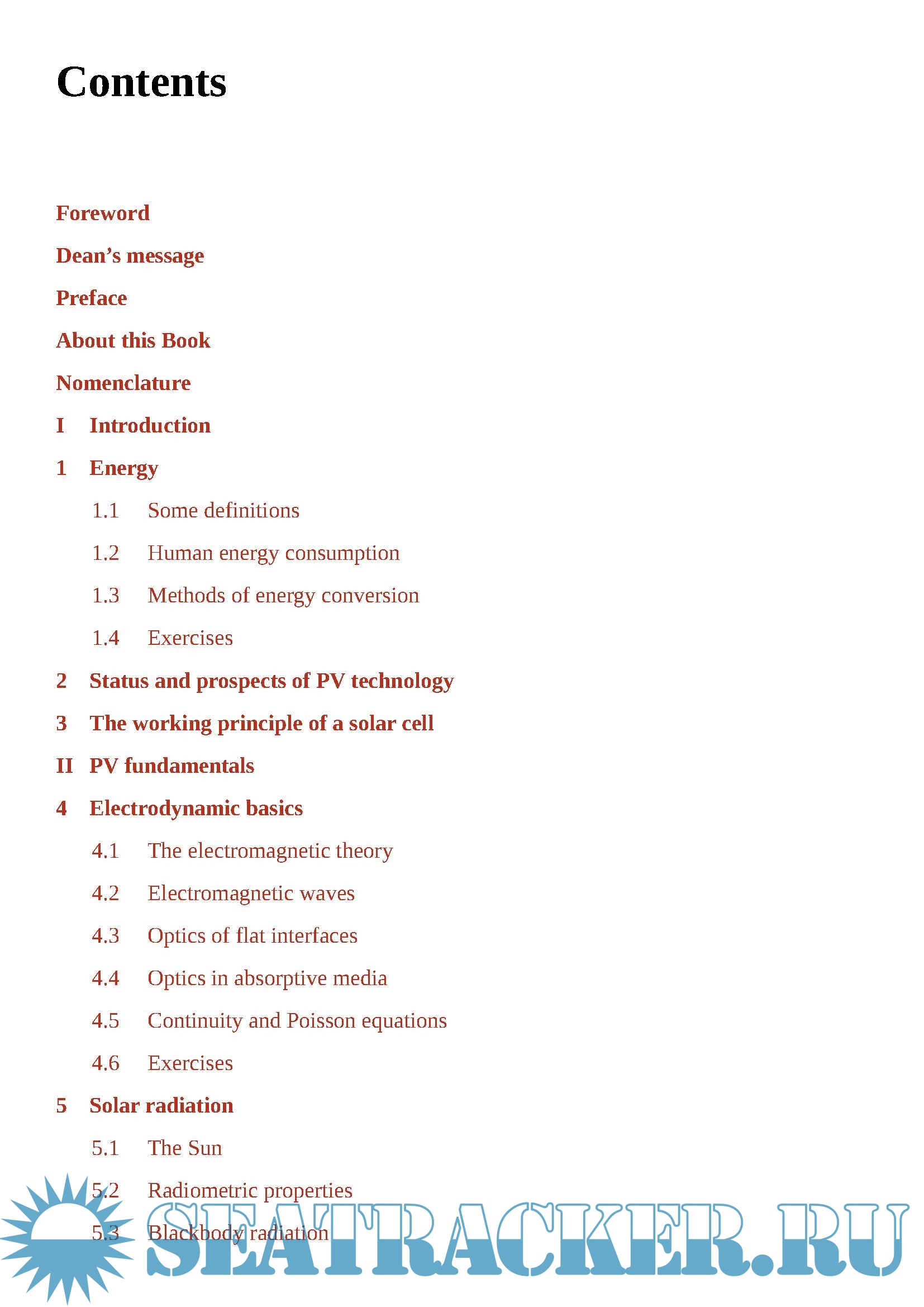 Technologies, which covers the topics treated in Part III; and PV Systems, which are