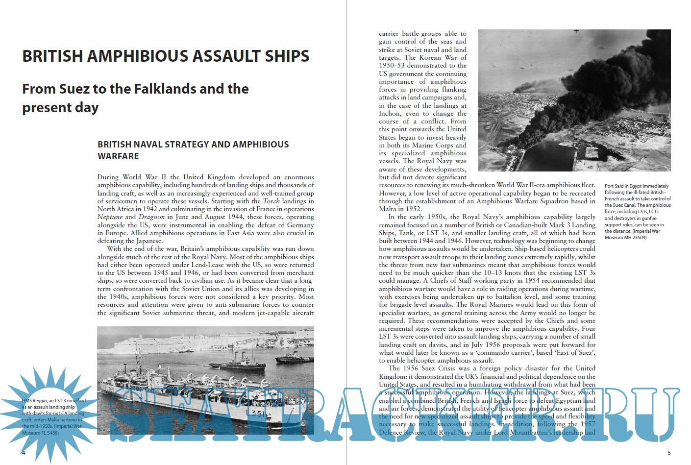 Year: 2019 Language: english Author: Hampshire Edward Genre: History Publisher: Osprey Publishing Edition: Osprey New Vanguard 277 Format: PDF Quality: eBook Pages count: 49 Description: Amphibious assault ships have been at the centre of nearly all of Britain's expeditionary campaigns since World War II, from the Suez crisis of 1956 to operations as far afield as Borneo (1963-66), the Falklands (1982), Sierra Leone (2000) and Iraq (2003). In major operations such as Suez and the Falklands, the use of amphibious assault ships was essential to the military success of the campaigns. The Suez Crisis saw two of the Royal Navy's former light fleet carriers converted into 'commando carriers' to specialise in amphibious warfare. In the 1960s these were followed by the famous Fearless class ships - the first purpose-built amphibious assault ships in the Royal Navy. With an internal dock, headquarters capability, and multiple landing craft, these 'Landing Platform Docks' were built to project power around the world. When the Falklands were invaded, HMS Fearless was the key to the successful landing in San Carlos. In the 1990s, a new generation was ordered: the helicopter carrier HMS Ocean and the Albion class LPDs. In recent years Ocean, Albion and Bulwark have been the largest fighting ships of the Royal Navy and have acted as the navy's flagships, as well as being perhaps the most versatile ships in the navy. This title is an essential guide to British Amphibious Assault Ships across the decades, from the mighty Fearless to the modern Albion. Packed with full-colour illustrations, contemporary photography, and detailed analysis, this definitive work explores the history, development, and deployment of the Royal Navy's front line.