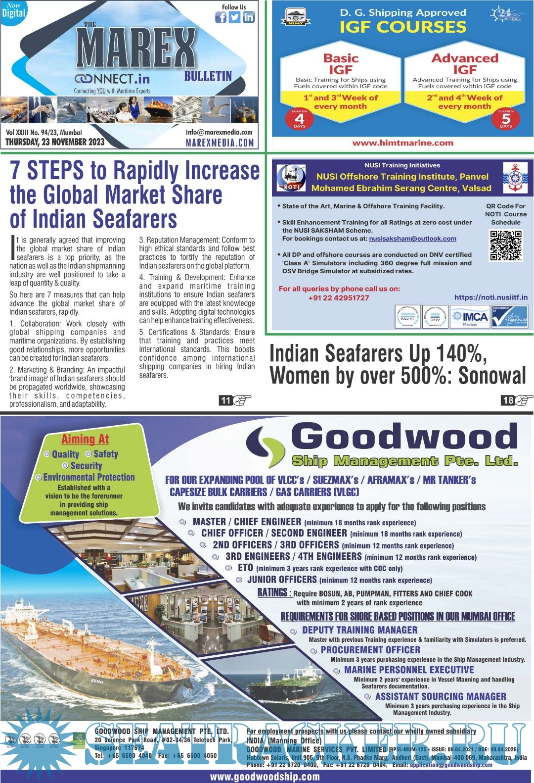 The Leading magazine for seafarers to locate Ship-board Employment opportunities, Training Institutes, Shipping companies.
