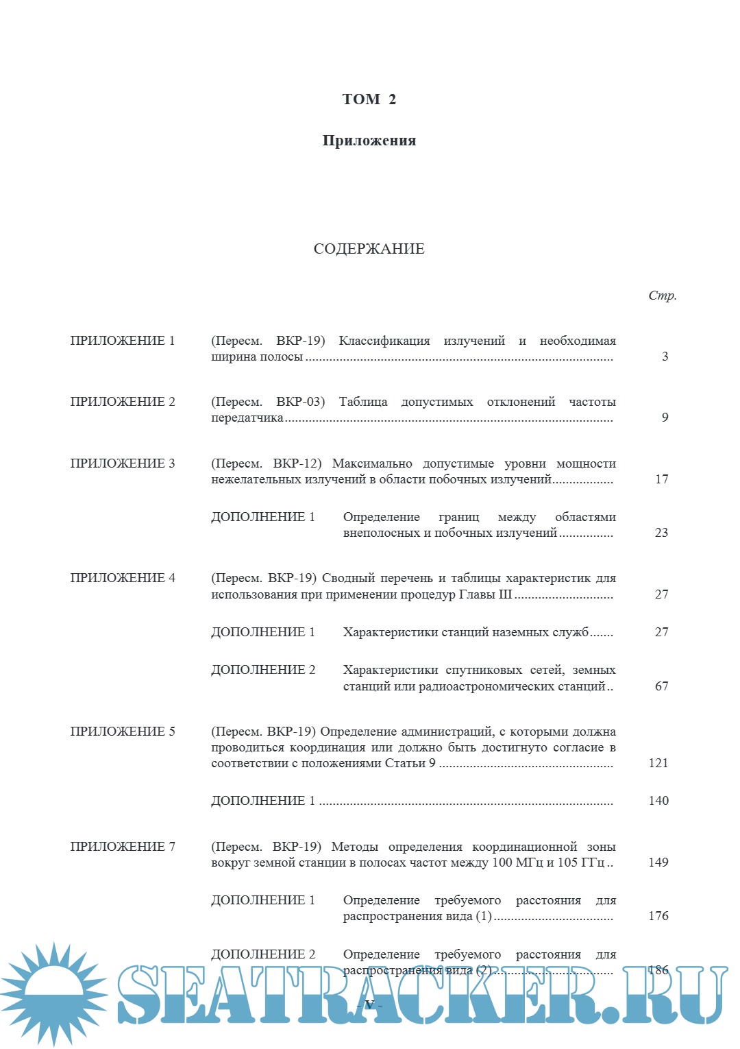 Регламент радиосвязи ITU (Приложения)