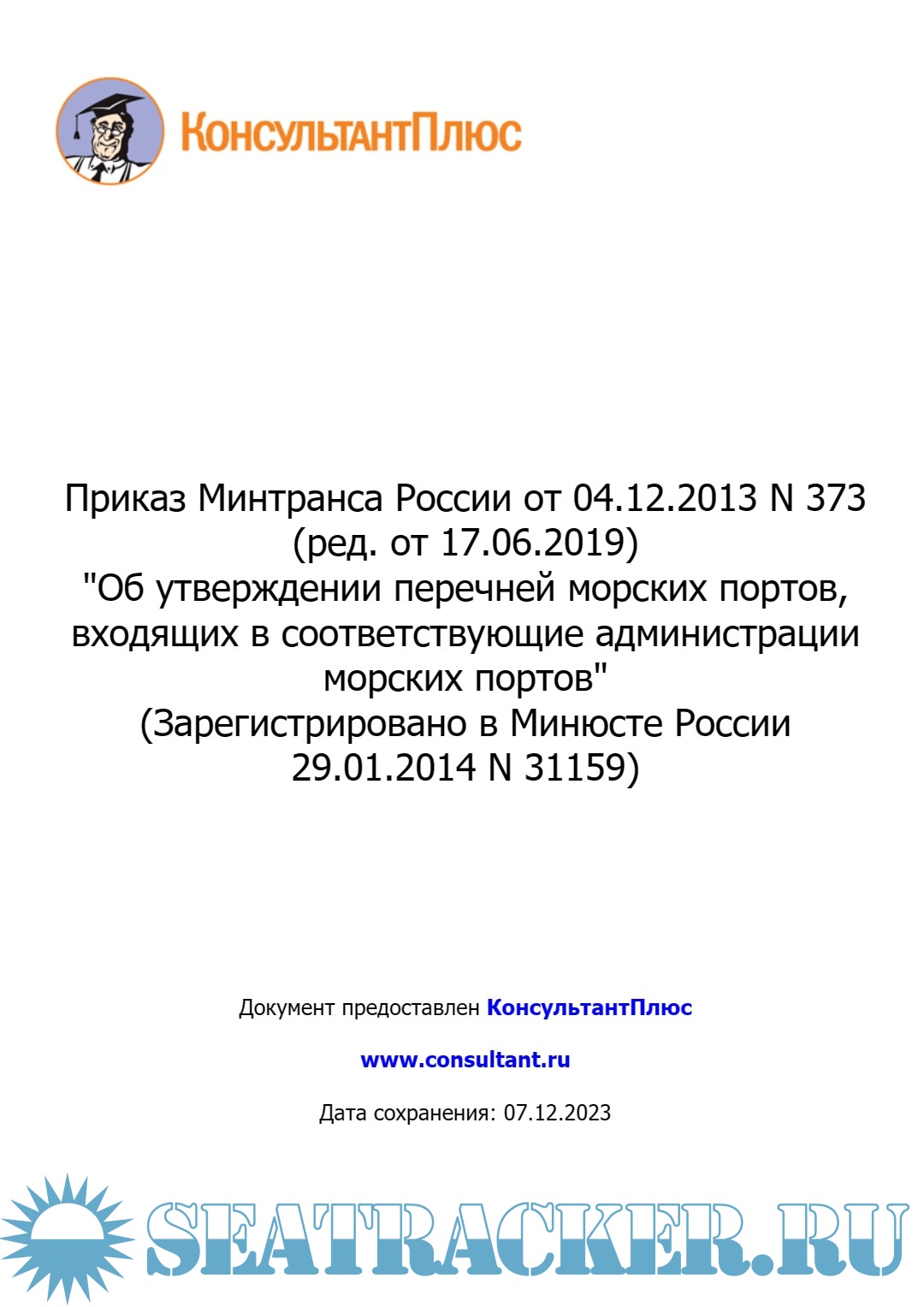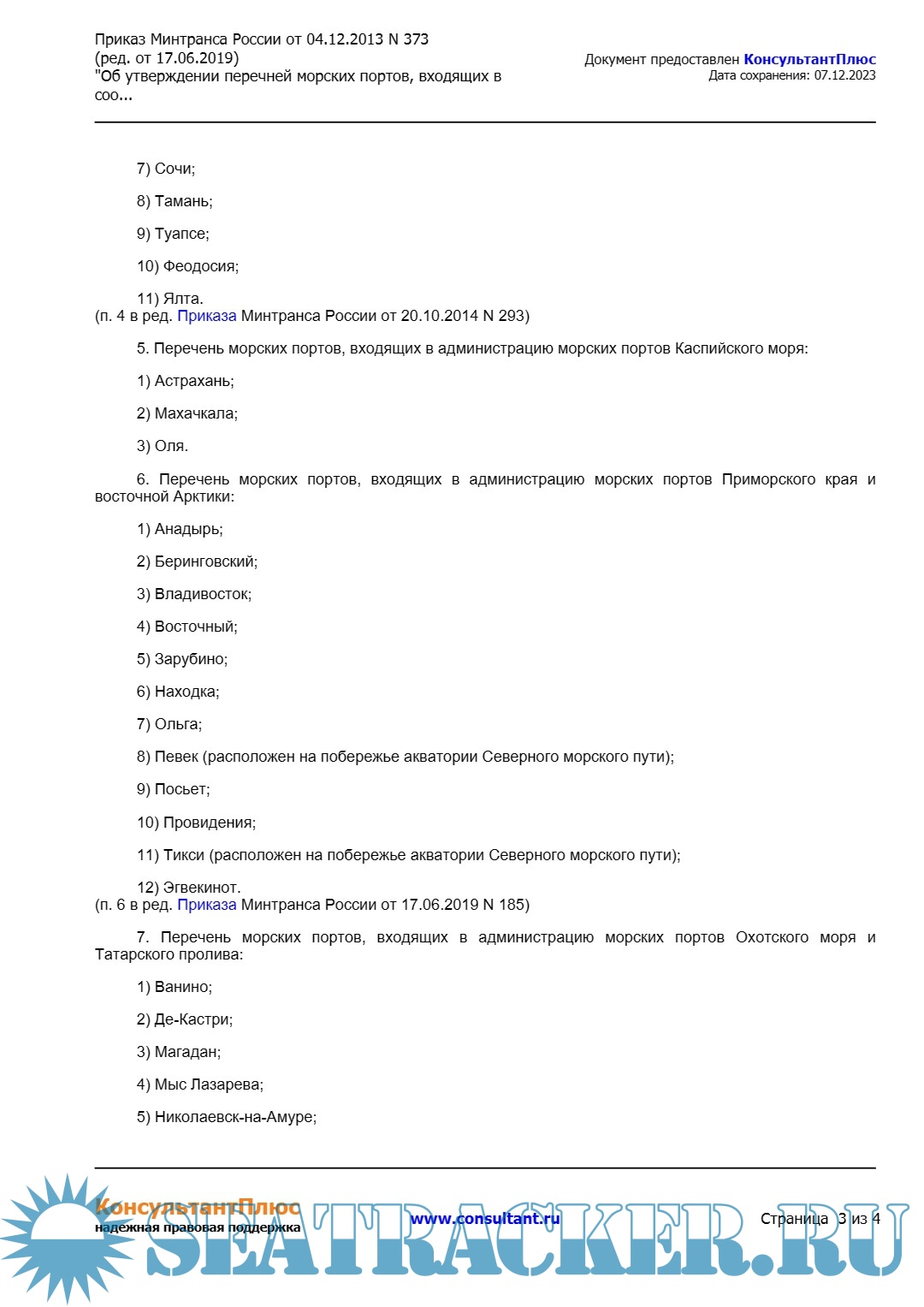 Описание: Приказ Минтранса России от 04.12.2013 N 373 (ред. от 17.06.2019) "Об утверждении перечней морских портов, входящих в соответствующие администрации морских портов".
