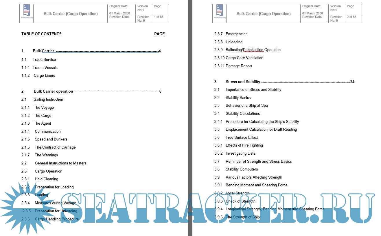 Deck Cadet Booklet for Bulk Carrier Cargo Operation