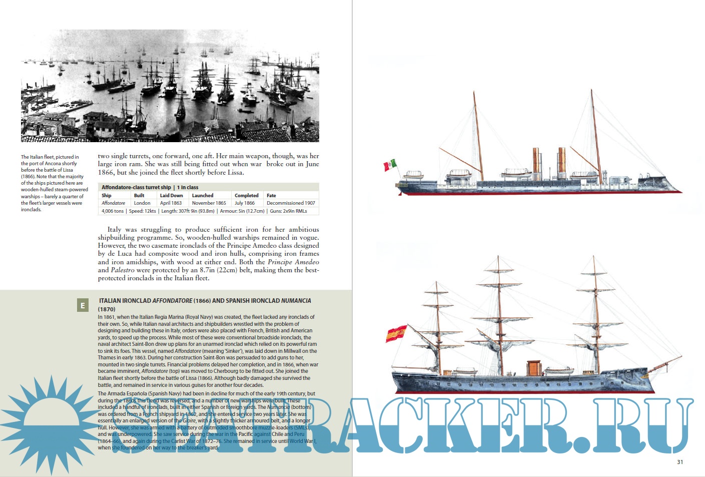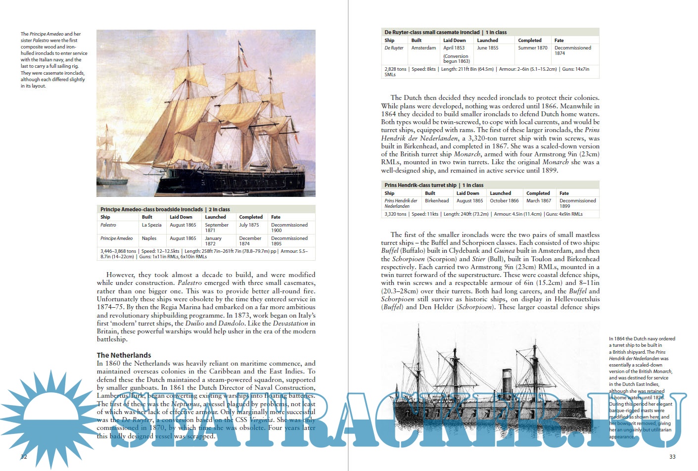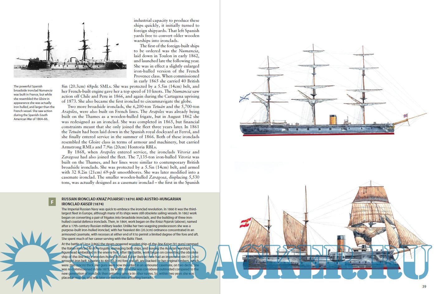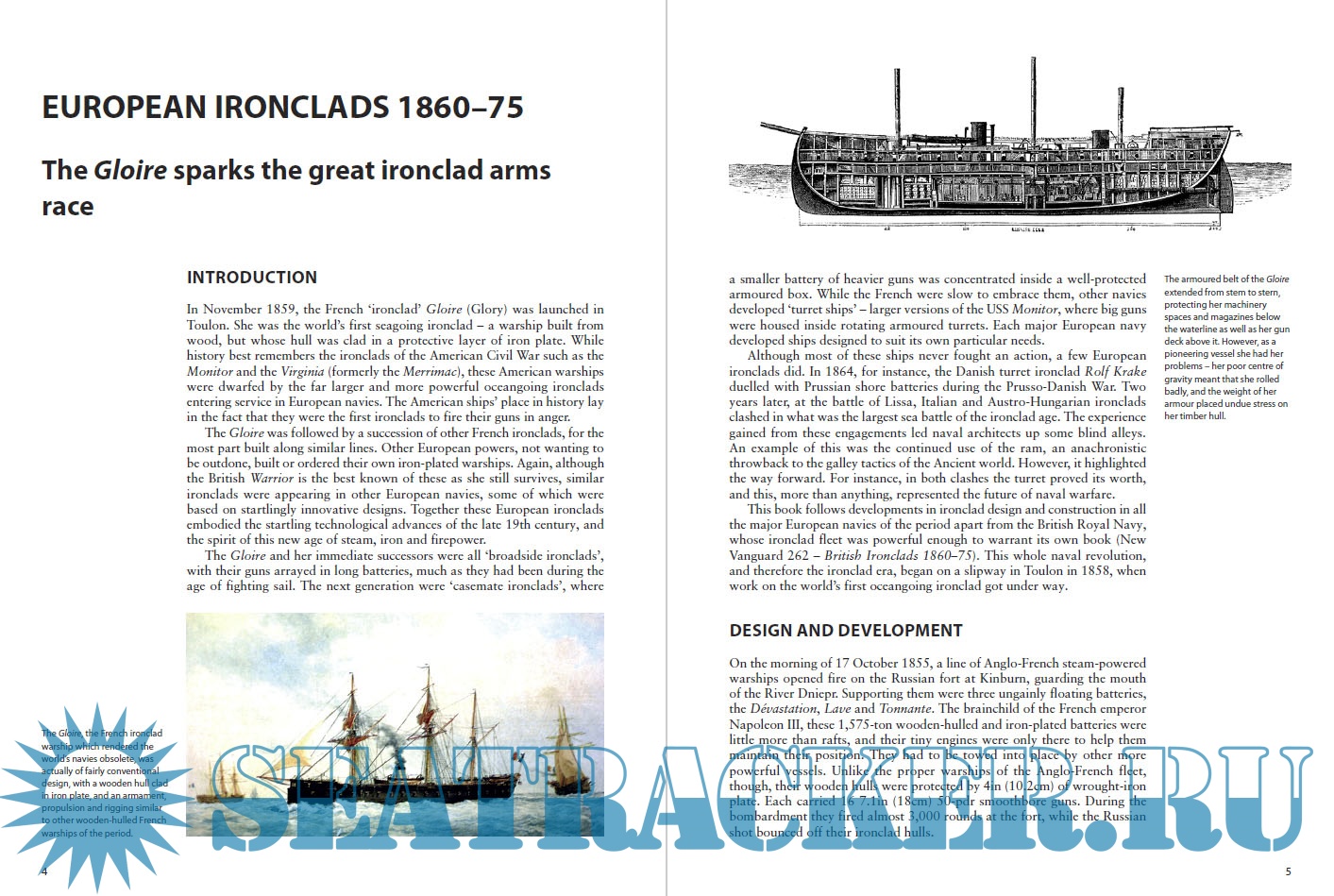 Year: 2019 Language: english Author: Angus Konstam Genre: History Publisher: Osprey Publishing Edition: Osprey New Vanguard 269 Format: PDF Quality: eBook Pages count: 49 Description: From Spain to Russia, and from Ottoman Turkey to Bismarck's Prussia, this book explores 15 years that transformed European naval warfare. When the Gloire slid down the Toulon slipway in 1859, it changed sea power forever. With this ship, the world's first oceangoing ironclad, France had a warship that could sink any other, and which was proof against the guns of any wooden ship afloat. Instantly, an arms race began between the great navies of Europe – first to build their own ironclads, and then to surpass each other's technology and designs. As both armour and gun technology rapidly improved, naval architects found new ways to mount and protect guns. The ram briefly came back into fashion, and Italian and Austro-Hungarian fleets fought the ironclad era's great battle at Lissa. By the end of this revolutionary period, the modern battleship was becoming recognizable, and new naval powers were emerging to dominate Europe's waters.