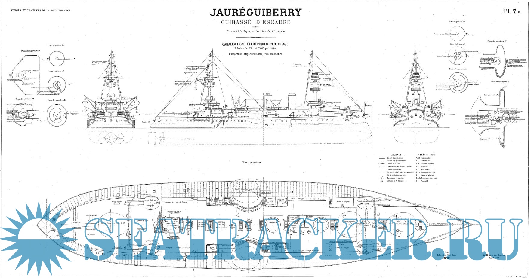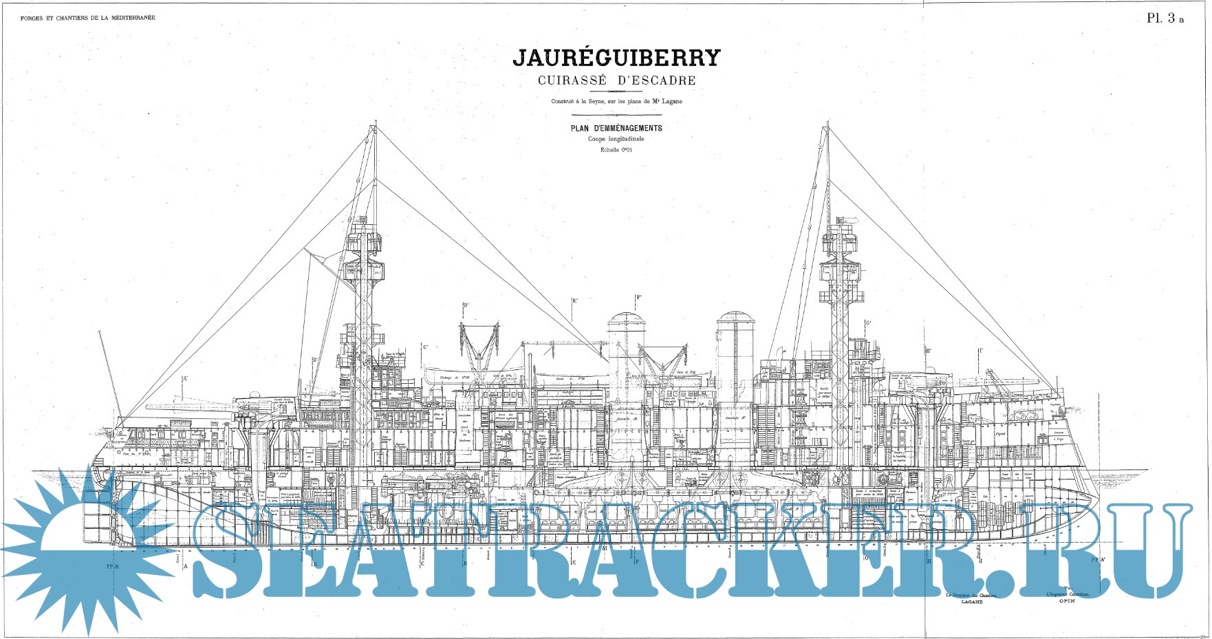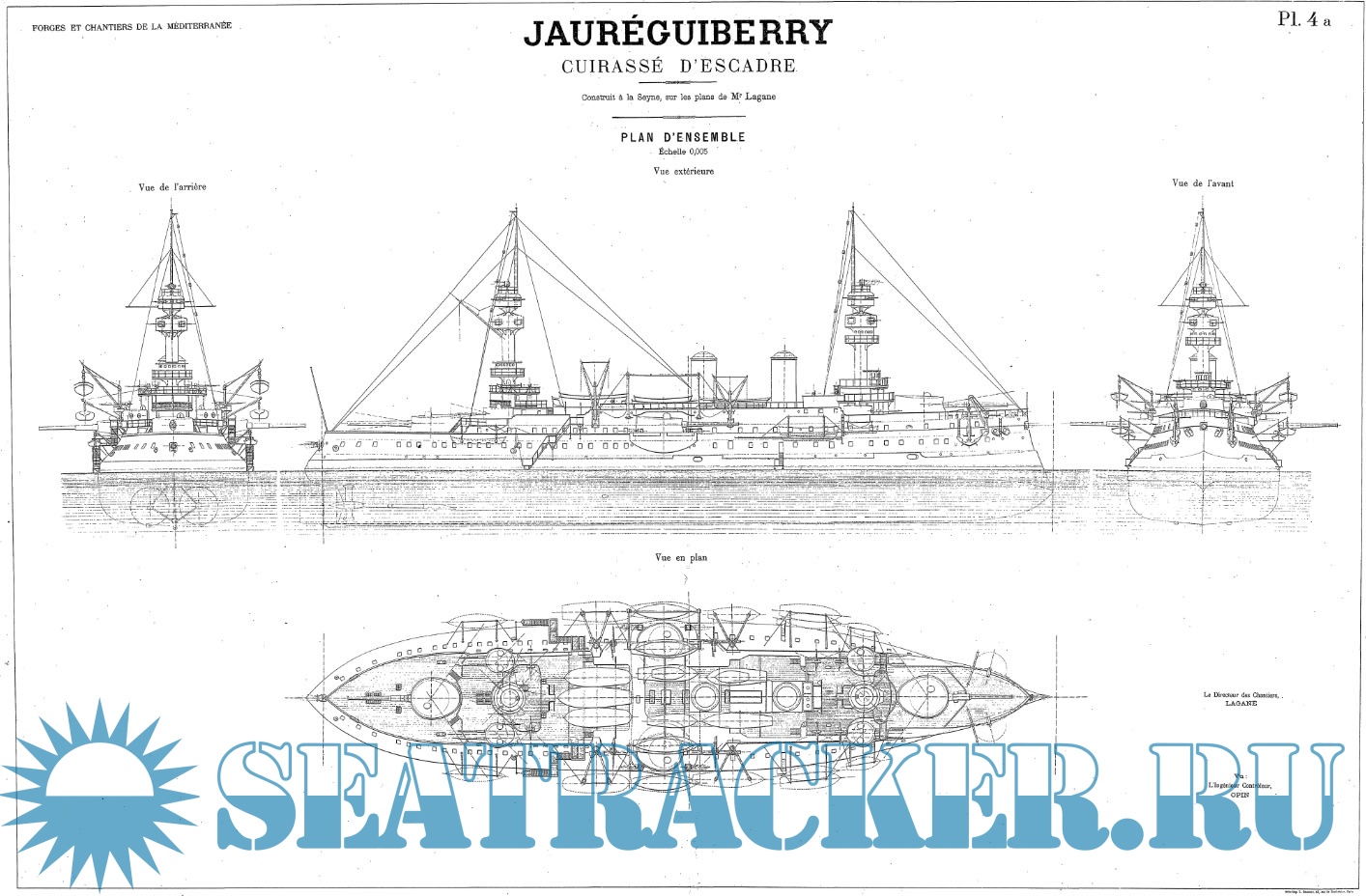 Архивные чертежи броненосца JAUREGUIBERRY (Франция) 1893 год