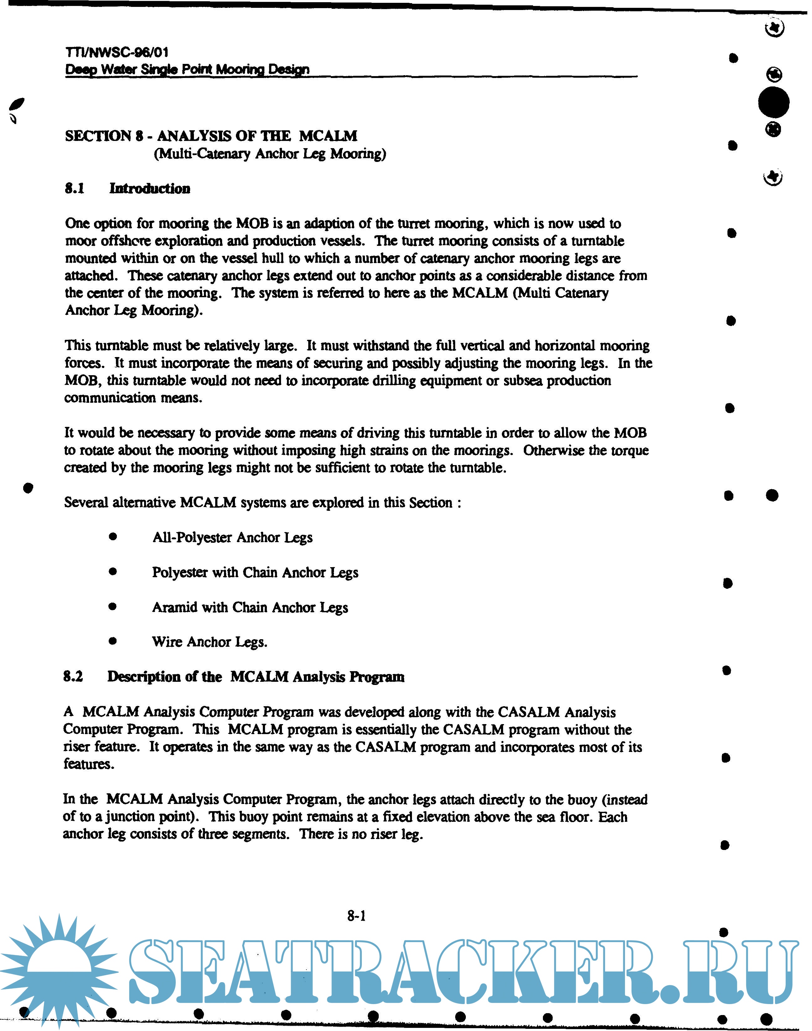 Description: This is a feasibility study of single point mooring (SPM) systems for the Mobile Offshore Base