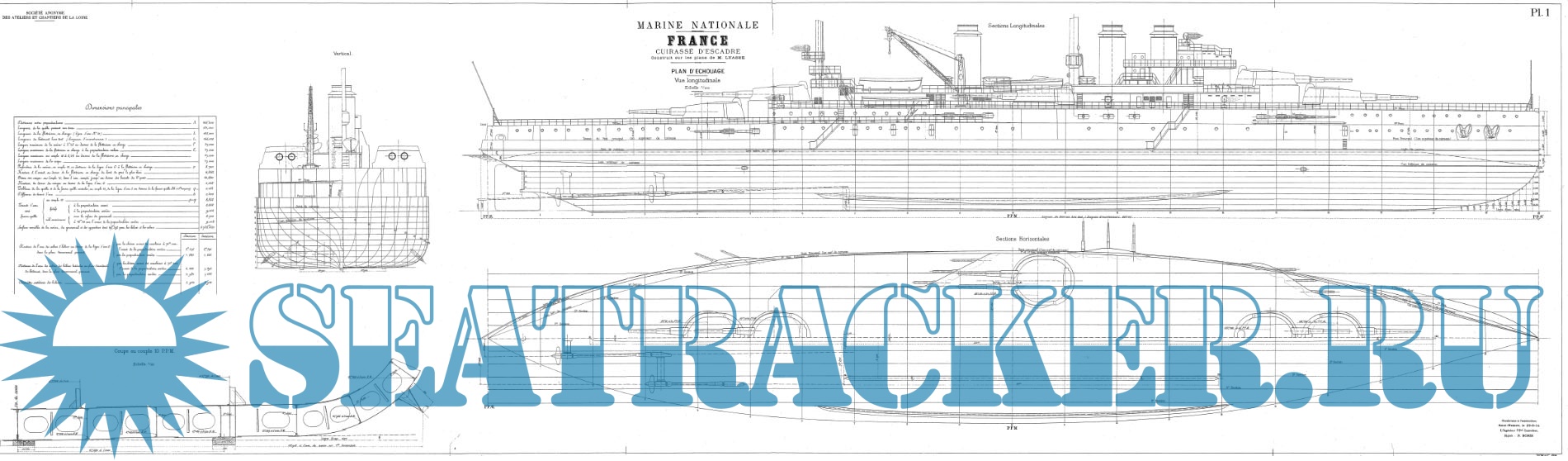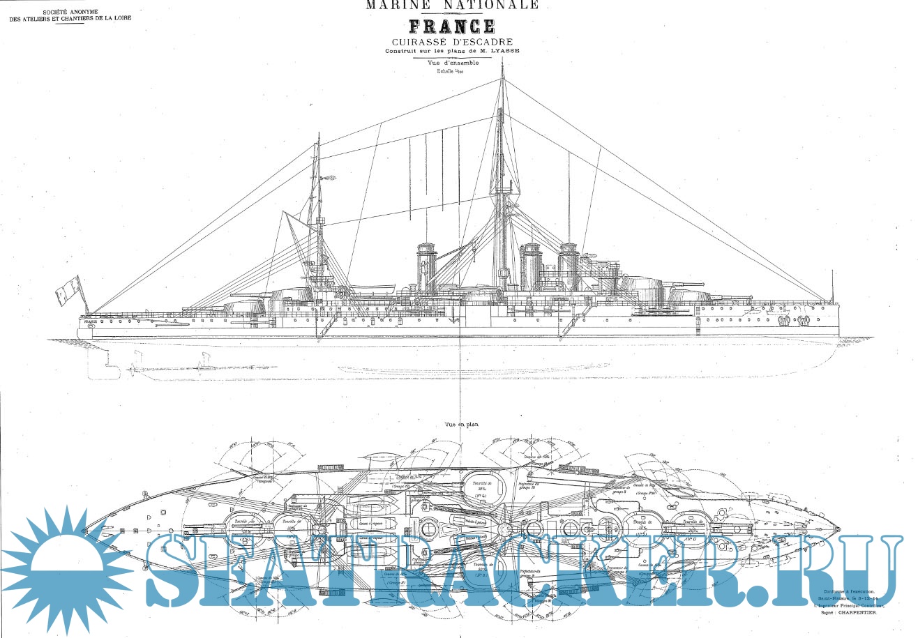Архивные чертежи французского эскадренного броненосца FRANCE 1912 год