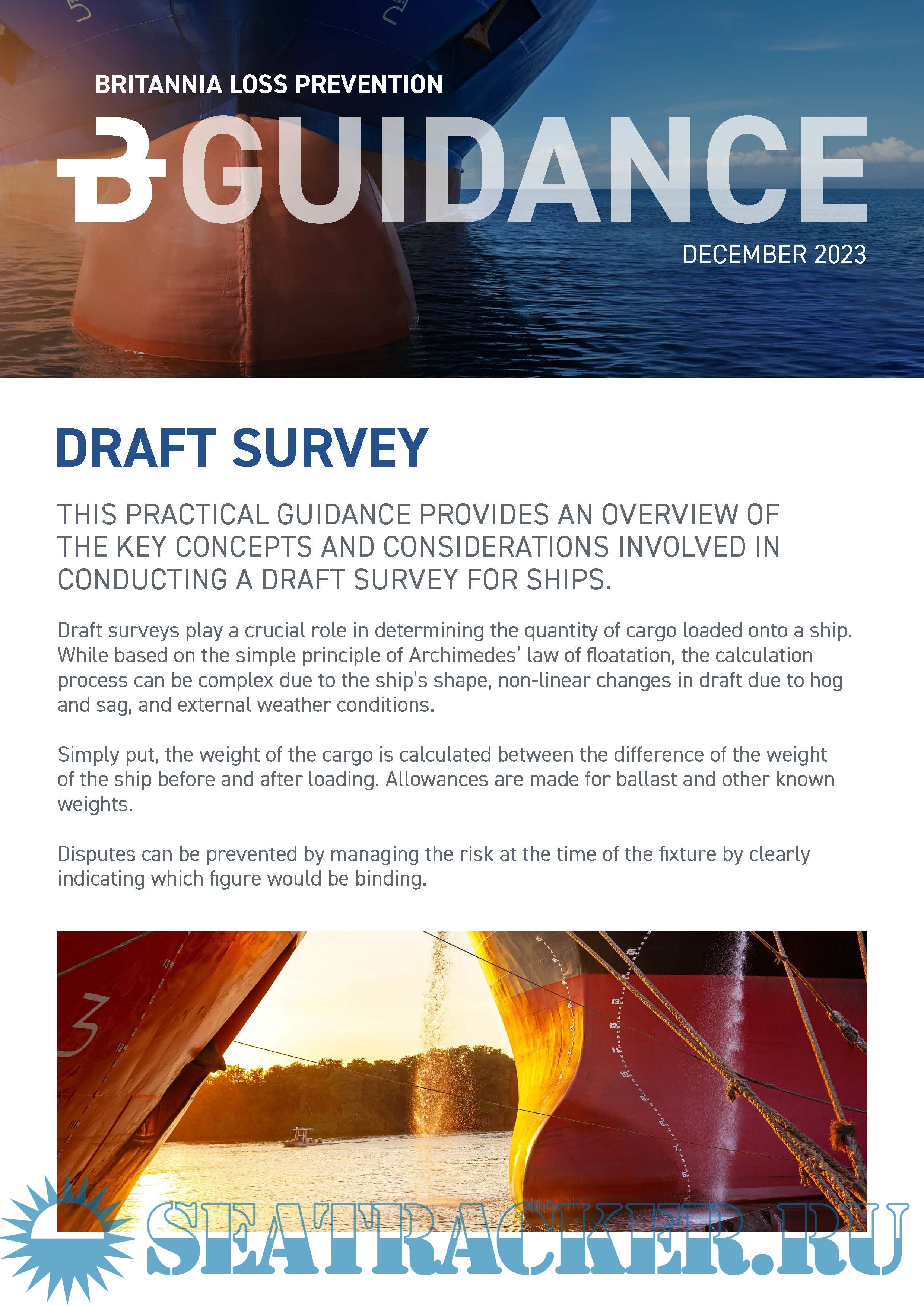 This practical guidance provides an overview of the key concepts and considerations involved in conducting a draft survey for ships.