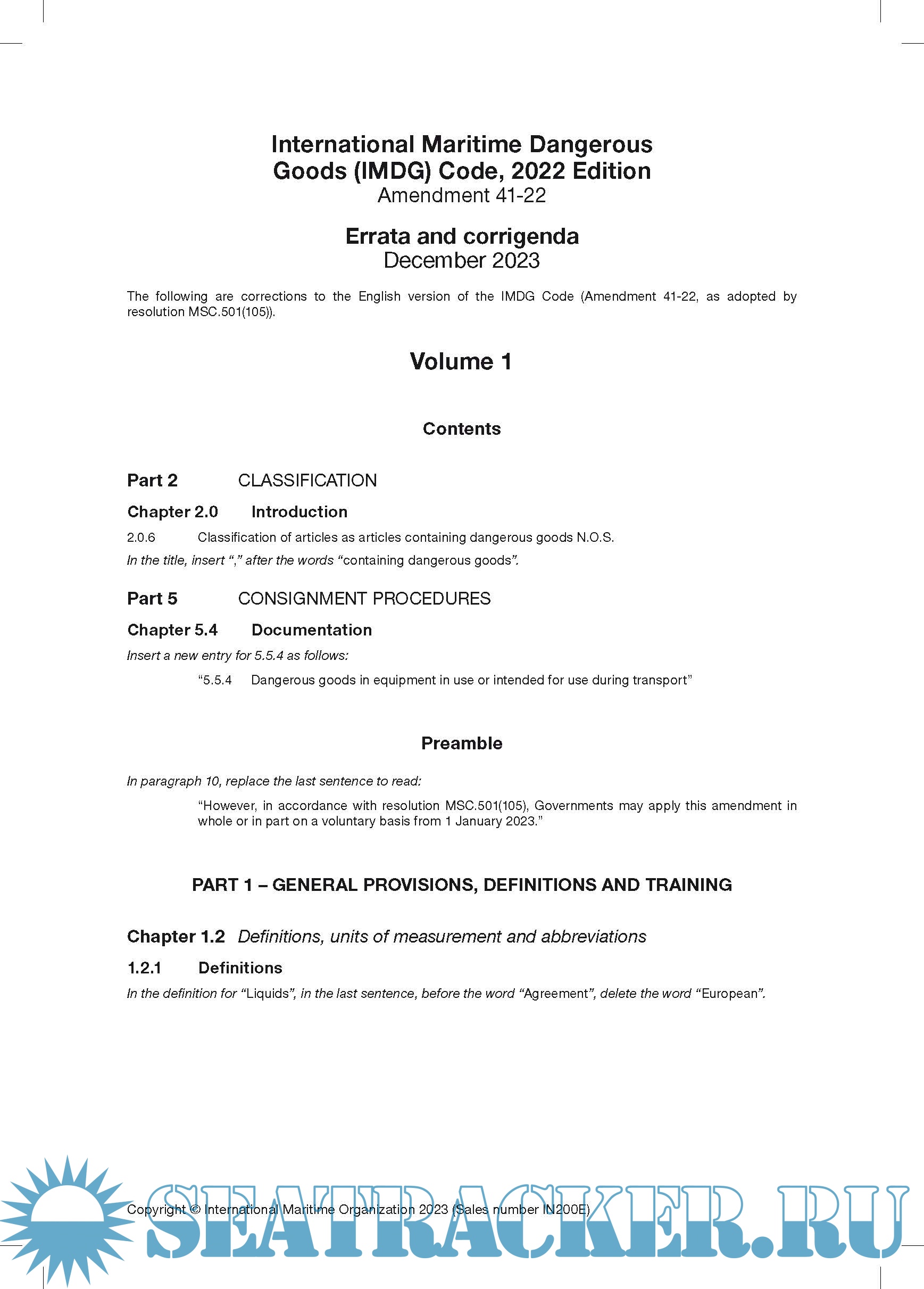 December 2023 Erratum: IMDG Code 2022 (IN200E)
