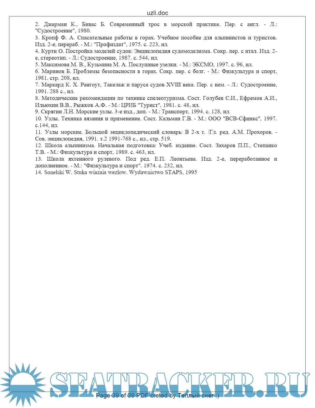 - основы наузистики - узлы, их назначение и применение Описано 250 видов узлов, есть иллюстрации и список литературы