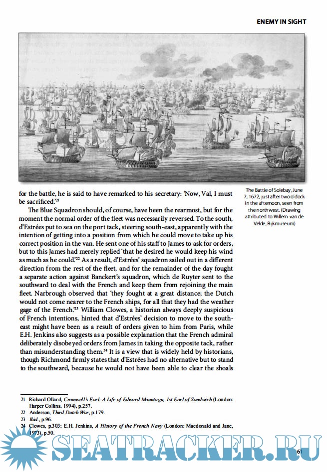 After reviewing the earlier wars, this book goes on to describe the third Anglo Dutch war, fought between 1672 and 1674. This war of shameless aggression was provoked by England, or rather by King Charles and his court, mainly as a matter of commercial greed. It began, before any declaration of war, with an attack on a Dutch merchant convoy proceeding up-Channel.