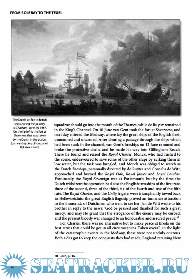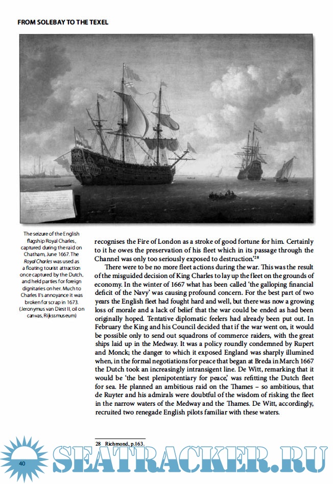 Description: England and the Dutch Republic fought three naval wars in the middle of the 17th century, arising principally from a clash of mercantile interests. In the first of these, under the Commonwealth, England had much the better, due largely to the outstanding leadership of Robert Blake. The second war was more even. By now Charles II had been restored to the throne. There were a number of fierce battles which went either way, but the war ended with the humiliation of the Dutch burning a large part of the English fleet in the Medway.