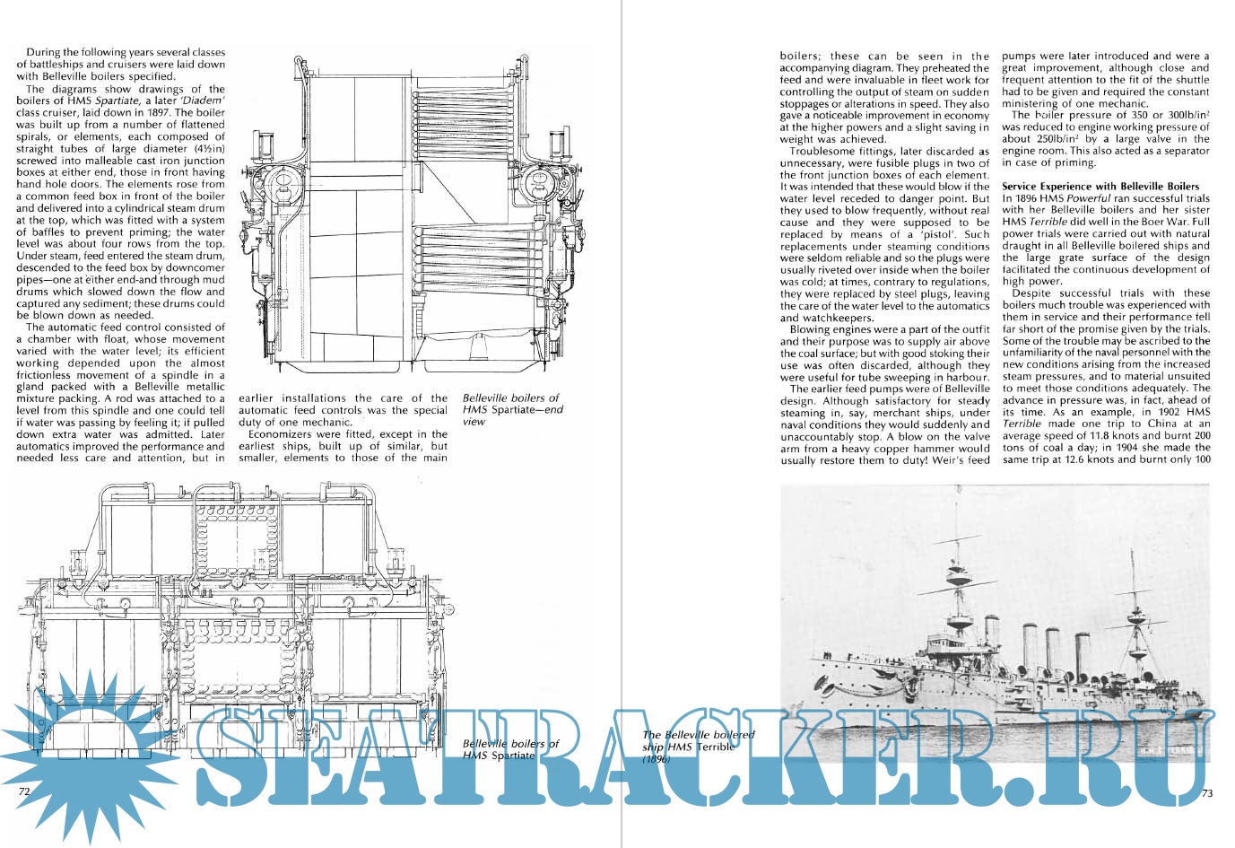 The evolution of the main propulsion engines was accompanied bv that of boilers; these were developed (rom simple types, through tubular rectangular boilers to small water-tube boilers with superheaters. Steam pressures rose from just above atmospheric to over 400lb/in*.