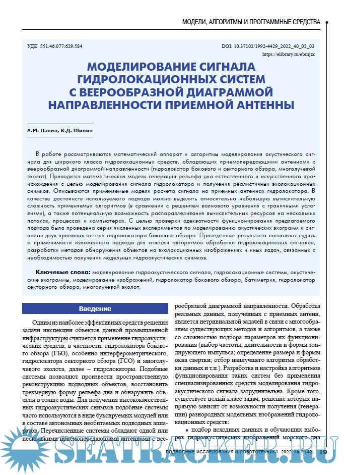 Описание: Научно-технический журнал «Подводные исследования и робототехника» посвящен проблемам исследования и освоения Мирового океана и относится к области знаний, лежащей на стыке наук:- теоретической и прикладной механики, навигации и управления движением, динамики управляемых систем и процессов,- робототехники, мехатроники, автоматизированного конструирования технических устройств, информатики и вычислительной техники,- теоретической и прикладной океанографии, физики океана, гидроакустики, морской геологии, экологии морских акваторий.Цель журнала – систематизировать и объективно отражать все наиболее значимые научно-технические и практические достижения и результаты исследований по освоению подводного пространства и морского дна, способствовать развитию новых идей, средств и методов подводных исследований и робототехники, консолидировать усилия научных и деловых кругов, потенциальных потребителей новейших достижений в сфере подводных технологий.Журнал «Подводные исследования и робототехника» публикует научно-технические статьи, проблемные, обзорные, дискуссионные материалы по всем направлениям, относящимся к методам и техническим средствам исследования и освоения океана, включая подводные аппараты и роботы, акустические, гидрологические, геофизические средства и методы исследования физических полей океана.Авторами публикаций журнала являются авторитетные ученые, ведущие специалисты и молодые исследователи из научных организаций и вузов Москвы и Подмосковья, Санкт-Петербурга, Зарубежья, Дальнего Востока, Урала, Сибири, и других регионов России. Для научного рецензирования и редактирования публикуемых статей привлекаются авторитетные специалисты в соответствующих областях знаний.Читательская аудитория - широкий круг ученых и специалистов, работающих в области исследования морских глубин, деловые круги и потенциальные потребители научно-технических разработок и инновационных проектов, молодые ученые, аспиранты и студенты, специализирующаяся в указанной области.