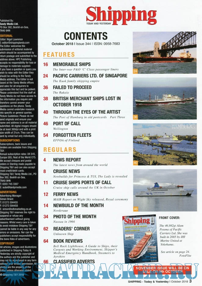 Description: Shipping T&Y is a monthly magazine for the shipping enthusiast offering up-to-date information,topical and in-depth historical articles alongside images, many of which are exclusive to the magazine.