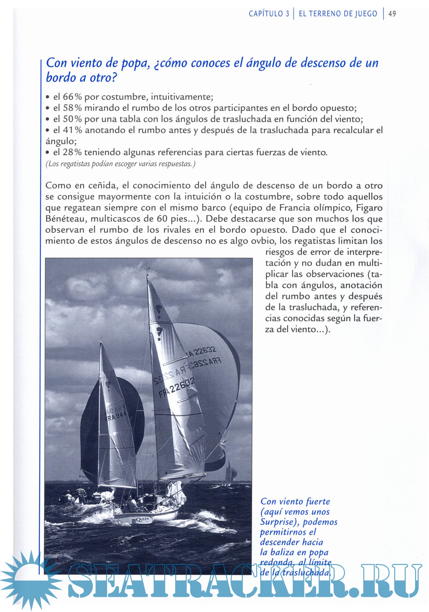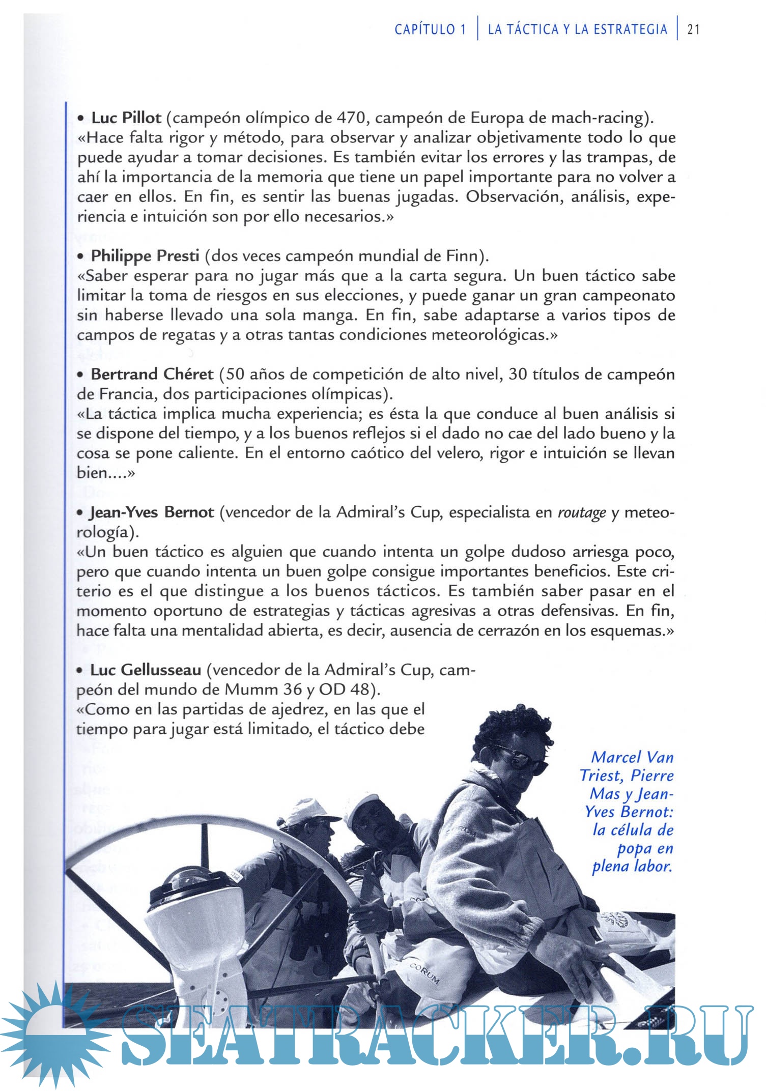 Year: 2007 Language: Spanish Author: Didier Ravon y Christian Dumard Genre: Technical book Publisher: Editorial Juventud Edition: 2 ISBN: 978842613422-6 Format: PDF Quality: Scanned pages Pages count: 293 Description: Regatas. Tácticas y estrategias es la primera obra publicada en España dedicada exclusivamente a esta verdadera ciencia a menudo compleja y desconocida. Didier Ravon y Christian Dumard, gracias a su experiencia en competiciones y a los testimonios, consejos y anécdotas que han recogido de muchos campeones, exponen aquí todos los aspectos de las diferentes disciplinas: vela ligera, windsurf, crucero, match-racing, regata de altura y oceánica, en solitario o con tripulación. Didier Ravon y Christian Dumard han participado en numerosas regatas, desde la Copa América con Marc Pajot en Fremantle (Australia) en 1987 y San Diego (Estados Unidos) en 1995, al Tour de France a vela que ganaron en 1988 con Pierre Mas y Bertrand Pacé, o en el Admirals Cup 1993 con el equipo de Francia de regata de altura, donde obtuvieron el tercer puesto. Un manual práctico tanto para debutantes como para iniciados en la alta competición 350 dibujos y fotografías con toda la información necesaria. Primera obra publicada en España exclusivamente dedicada a la preparación y competición en regatas.