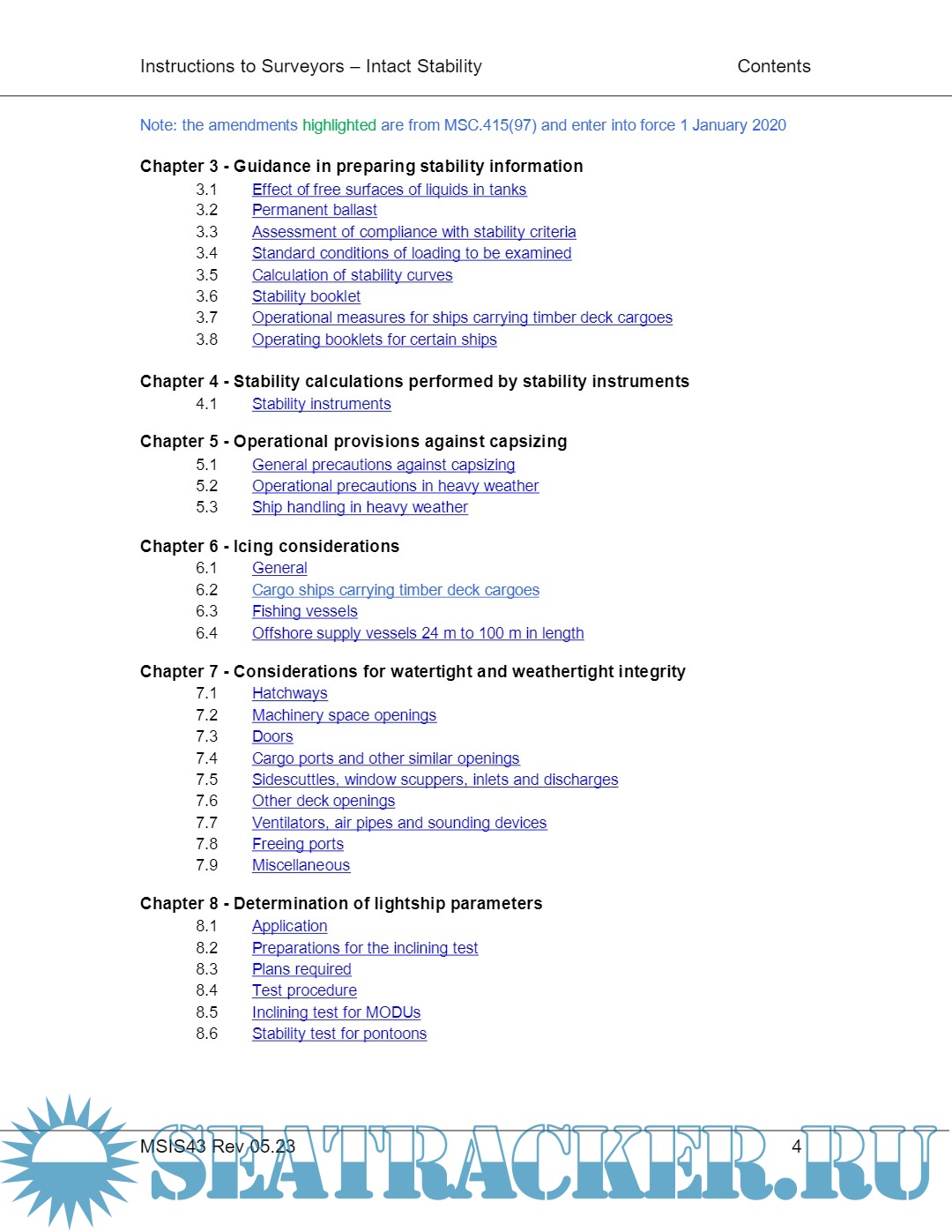 INSTRUCTIONS FOR THE GUIDANCE OF SURVEYORS ON INTACT STABILITY IMO 2008 CODE & Explanatory Notes- 2023
