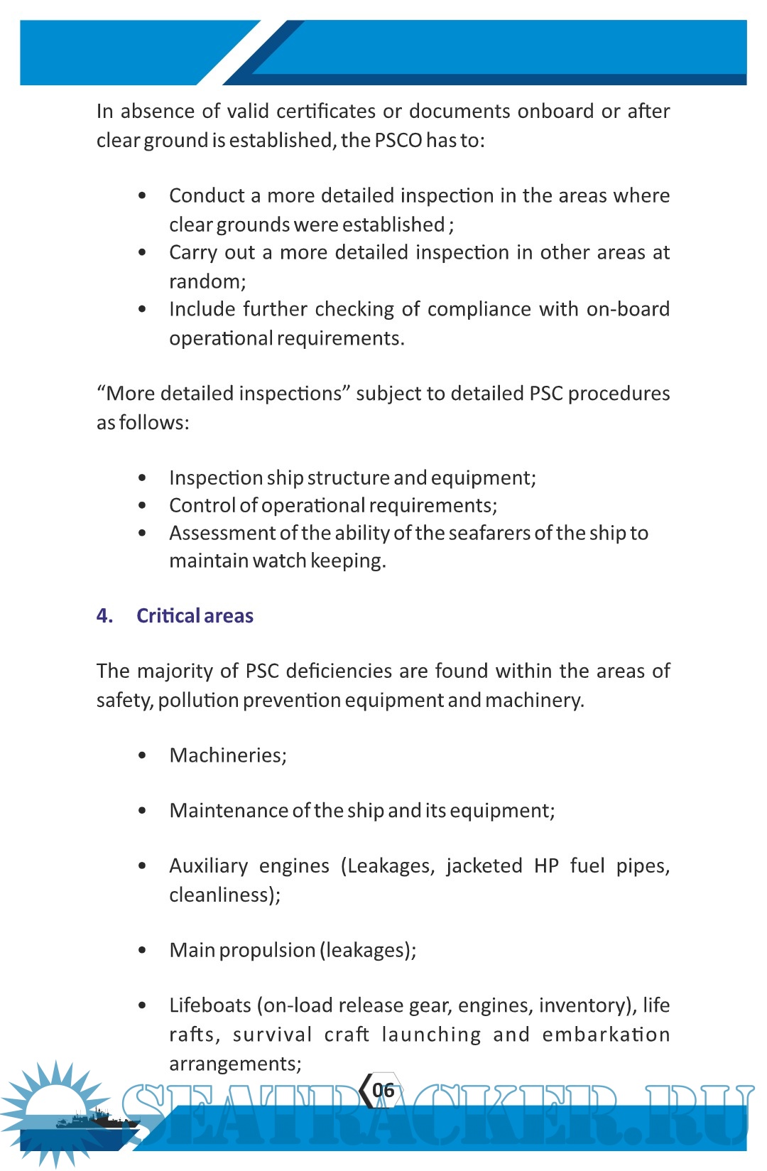 Year: 20XX Language: English Author: Indian Ocean MOU Genre: Guide Publisher: Indian Ocean MOU Format: PDF Quality: Scanned pages Pages count: 79 Description: This booklet provides information based on relevant IMO Instruments, ILO instruments, IMOMOU PSC Manual and the PSC inspections carried out by various member Authorities of the IMOMOU and this booklet may be used the PSCO's for their quick reference.