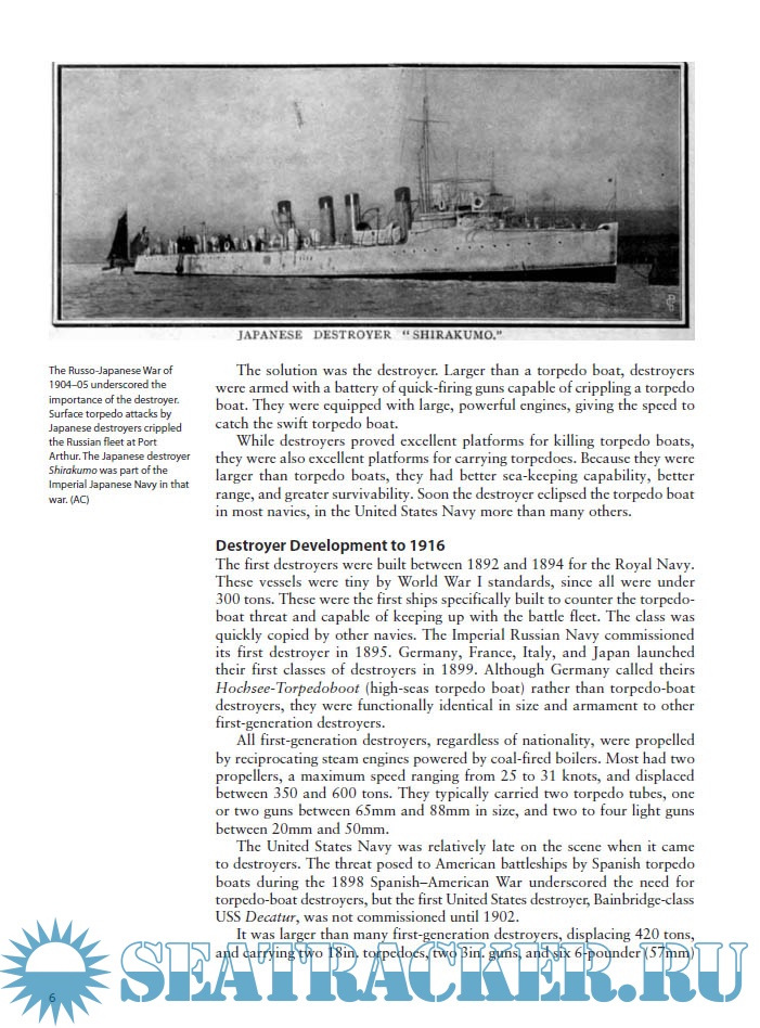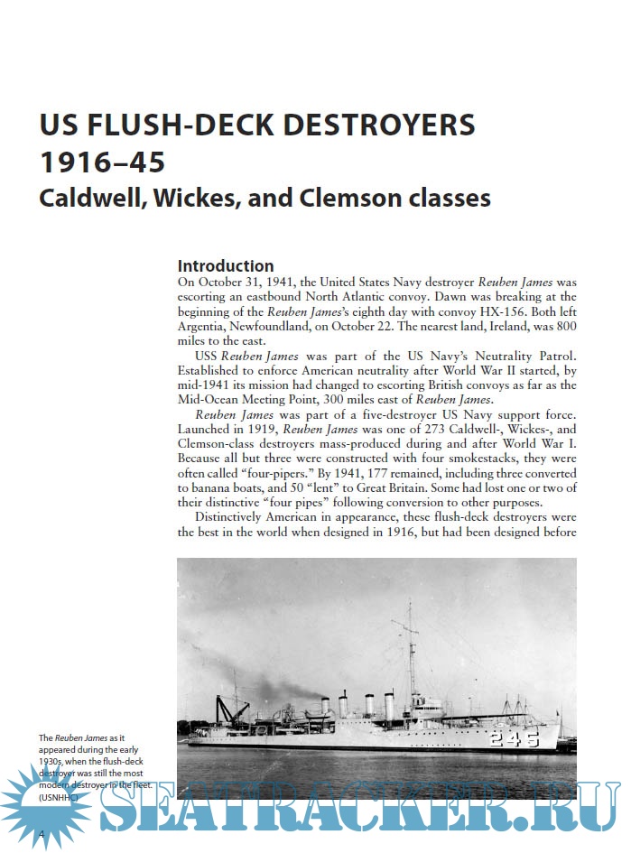 Год выпуска: 2018 Язык: русский Автор: Mark Lardas Жанр: История Издательство: Osprey Publishing Издание: New Vanguard 259 Формат: PDF Качество: Изначально компьютерное (eBook) Количество страниц: 49 Описание: Four pipes and flush decks--these ships were a distinctively American destroyer design. Devised immediately prior to and during the United States' involvement in World War I they dominated the US Navy's destroyer forces all the way through to World War II. They were deployed on North Atlantic and Norwegian Sea convoys, and virtually everywhere in the Pacific, from Alaska to Australia. Fifty were given to Great Britain in its hour of need in 1940, and many would serve in other navies, fighting under the Soviet, Canadian, Norwegian, and even the Imperial Japanese flags. They also served in a variety of roles becoming seaplane tenders, high-speed transports, minesweepers, and minelayers. One was even used as a self-propelled mine during Operation Chariot, destroying the dry dock at St. Nazaire. Fully illustrated throughout with commissioned artwork and contemporary photographs, this volume reveals the operational history of these US Navy ships that fought with distinction in both World Wars.