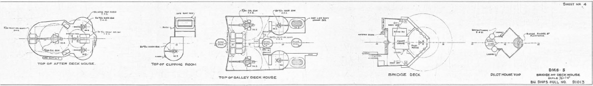 Архивные чертежи эсминца США DMS-5 (ex DD-161) - USS Palmer (тип «Wickes») на 1943 год.